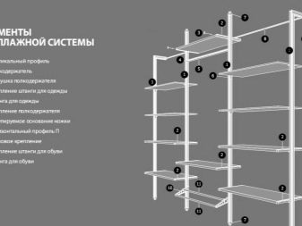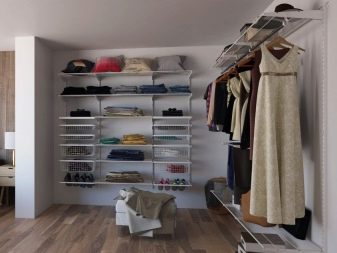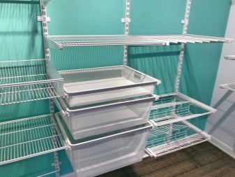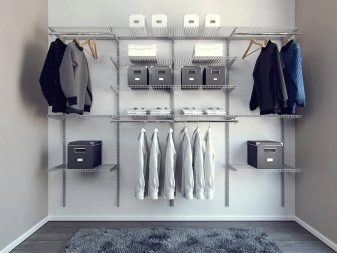 Los sistemas de vestuario se fabrican sobre la base de tener en cuenta las peculiaridades de la circulación de aire en la habitación. Gracias a esto, las cosas colocadas en el sistema de almacenamiento pueden presumir de limpieza y frescura cuando se almacenan en cestas de malla.