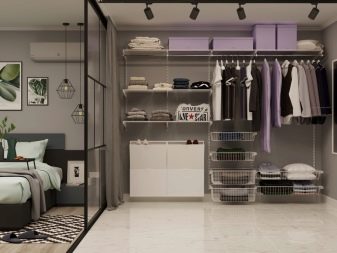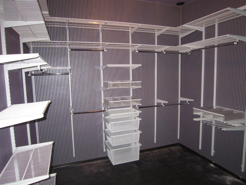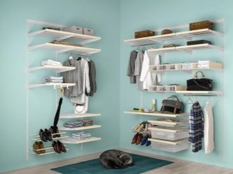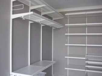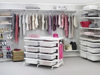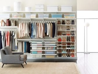 La principal ventaja de los vestidores considerados es que su propietario tiene la oportunidad de transformar el sistema de almacenamiento, agregarle nuevos elementos o eliminar los innecesarios, así como aumentar el número de secciones. El diseño se crea teniendo en cuenta las tendencias europeas actuales, por lo tanto, un sistema de estantes de este tipo encajará perfectamente en cualquier interior.