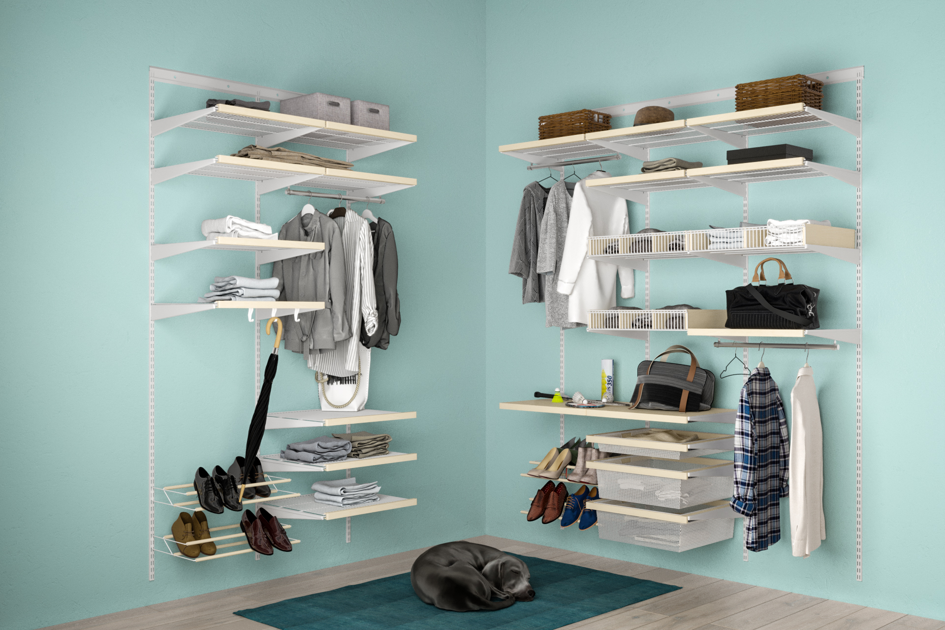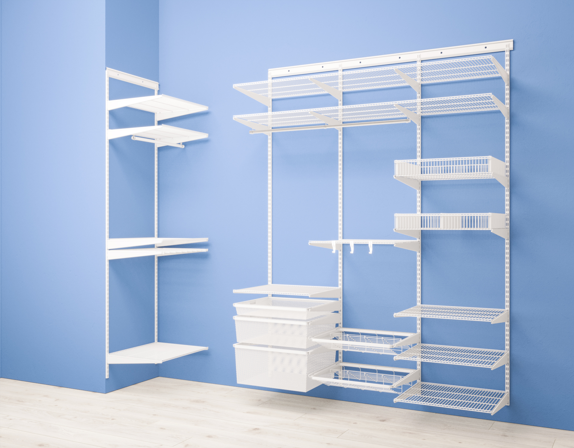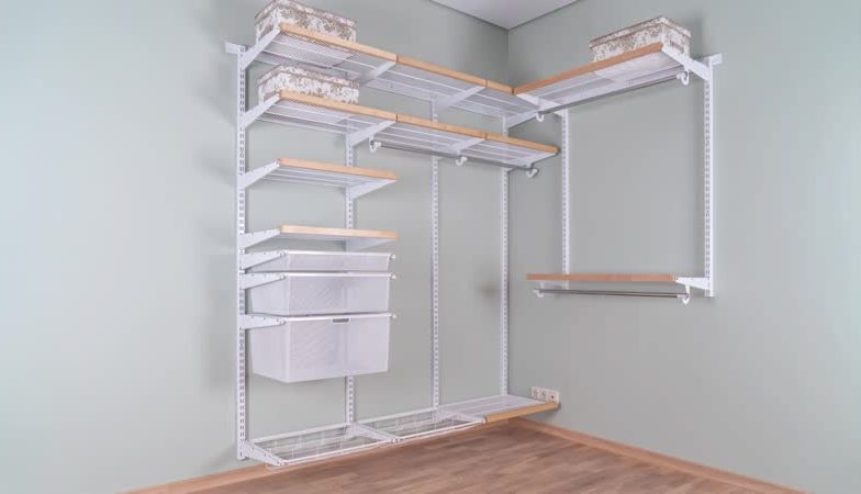 Los sistemas de guardarropa de este fabricante se construyen a partir de un cierto conjunto de elementos constitutivos que le permiten ensamblar un armario de malla por su cuenta de acuerdo con un proyecto individual. El diseño de dicho sistema incluye cestas, rieles, estantes de varias configuraciones, estantes, soportes, sujetadores y accesorios. Puede guardar ropa, zapatos, juguetes, platos, libros, cosas útiles y otros artículos del hogar en estantes y cajones.