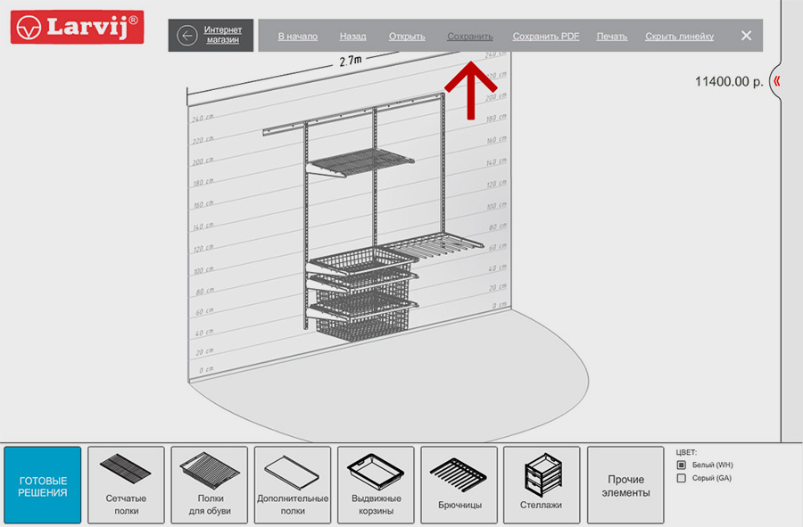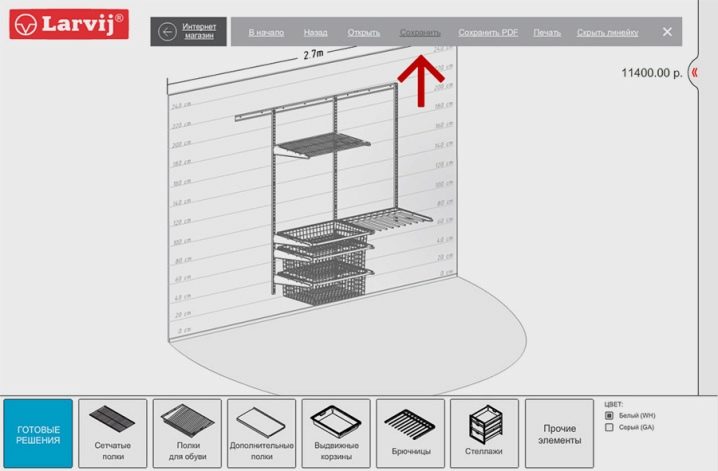 En el sitio web oficial del fabricante, puede solicitar soluciones listas para usar, pero si no hay una opción adecuada entre ellas, el usuario puede planificar su propio diseño único utilizando el planificador Larvij. Los accesorios son universales y se pueden combinar de diferentes formas. Por lo tanto, es posible crear un sistema de almacenamiento para varios propósitos, tamaños y formas.