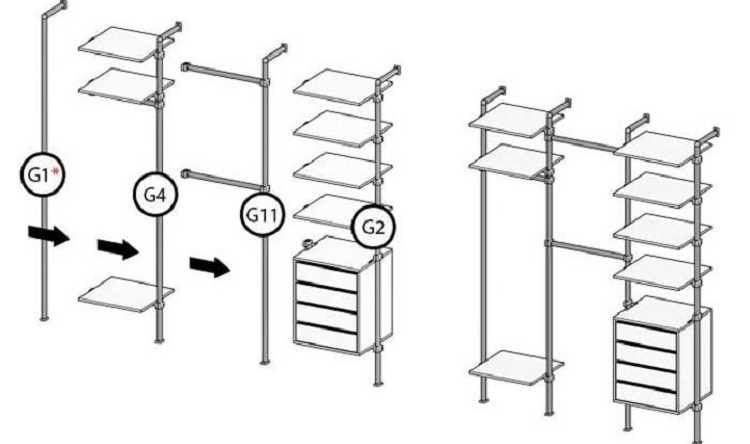 En el sitio web oficial de la marca, los usuarios tienen la oportunidad de utilizar la herramienta de diseño 3D para desarrollar de forma independiente el diseño de una estructura de armario. Esto se puede hacer fácilmente revisando las instrucciones de montaje adjuntas. Después de haber desarrollado su propia versión del dispositivo de sistema de bastidor, puede brindarse la comodidad de vivir y la comodidad en la habitación. El planificador calcula automáticamente el costo de los componentes, después de lo cual se forma un pedido.
