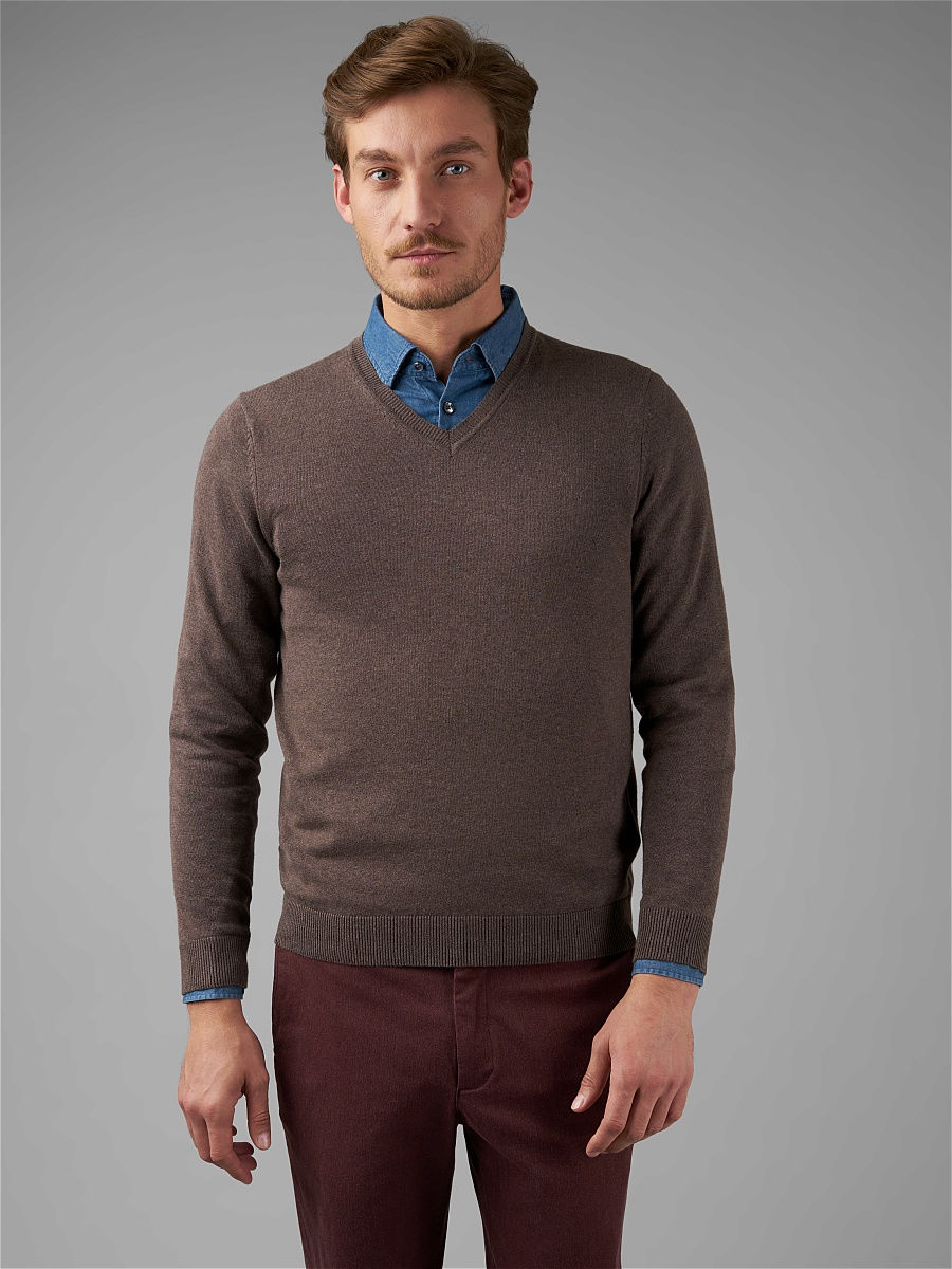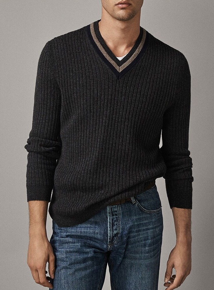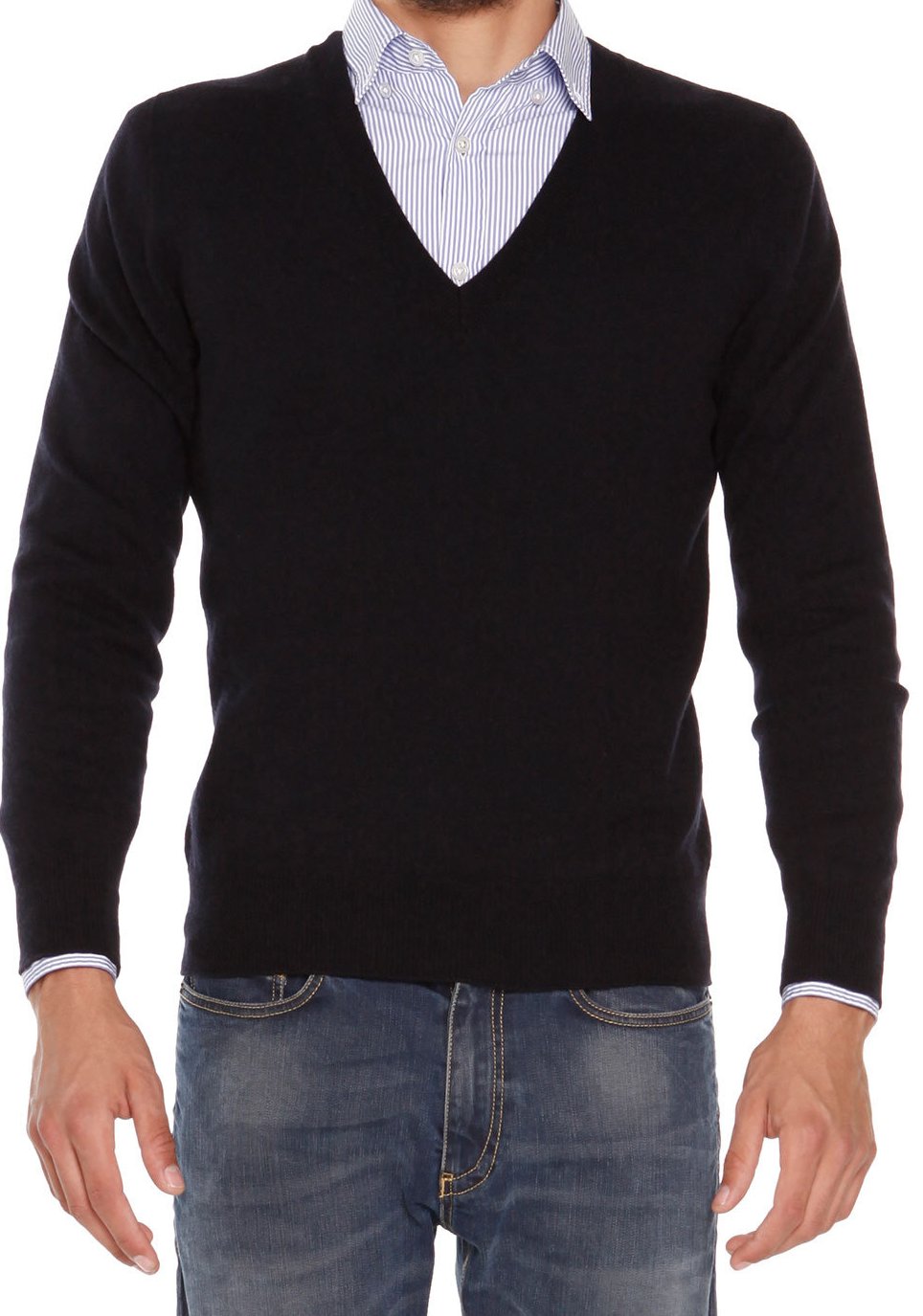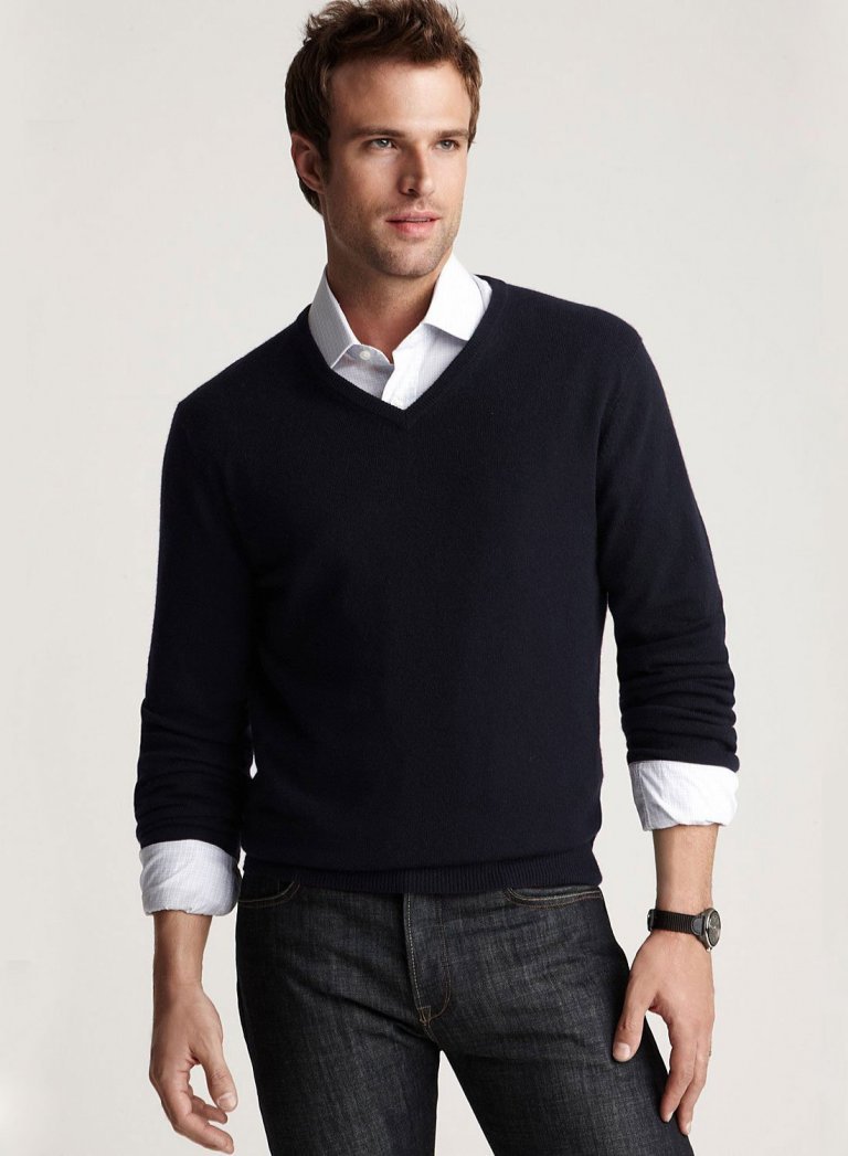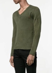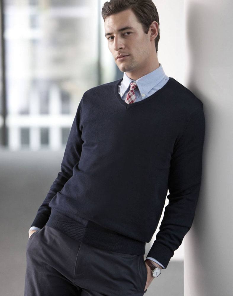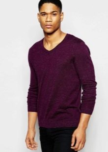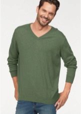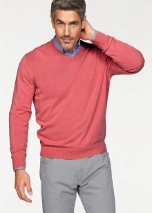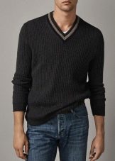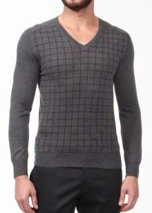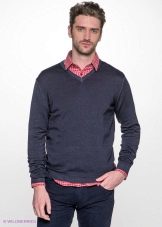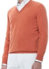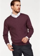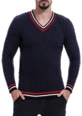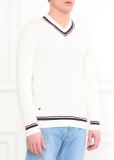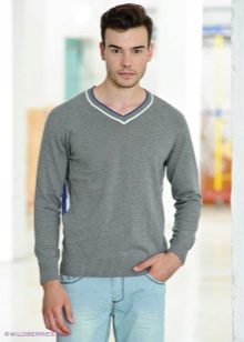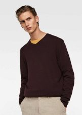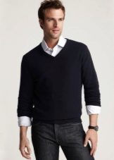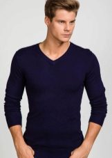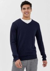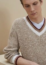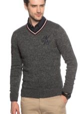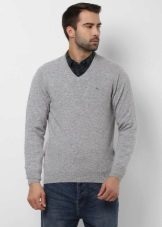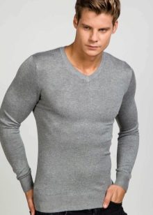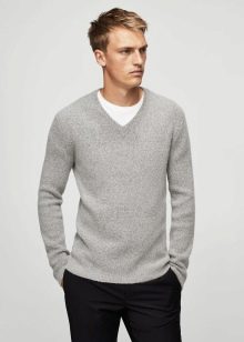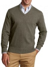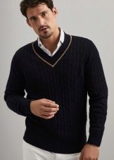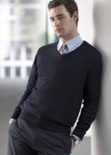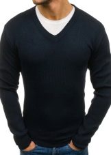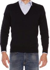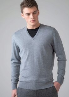 El clásico jersey con cuello en V se puede llevar con una camisa. Además, una corbata en un conjunto de este tipo es un elemento opcional. Esta opción es indispensable en el vestuario de los hombres de negocios. El modelo también combina con una camiseta. Sin embargo, es importante aquí que no haya un escote desnudo profundo.