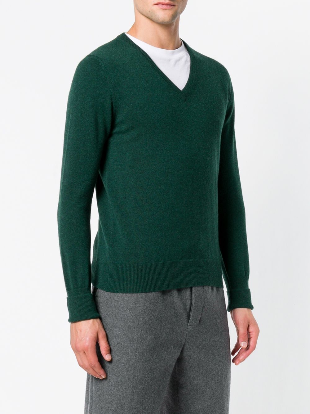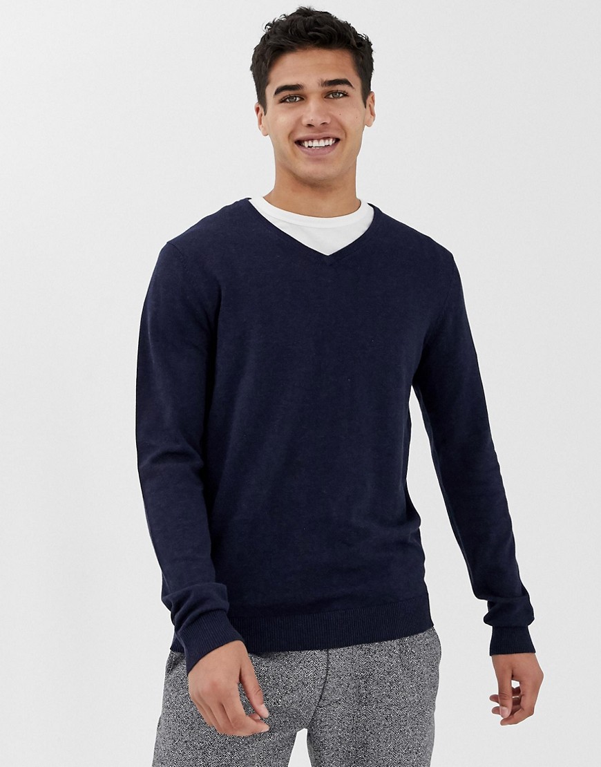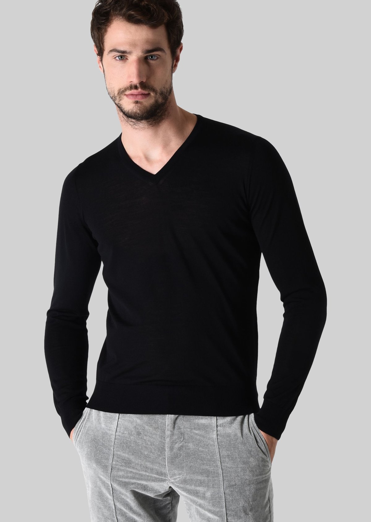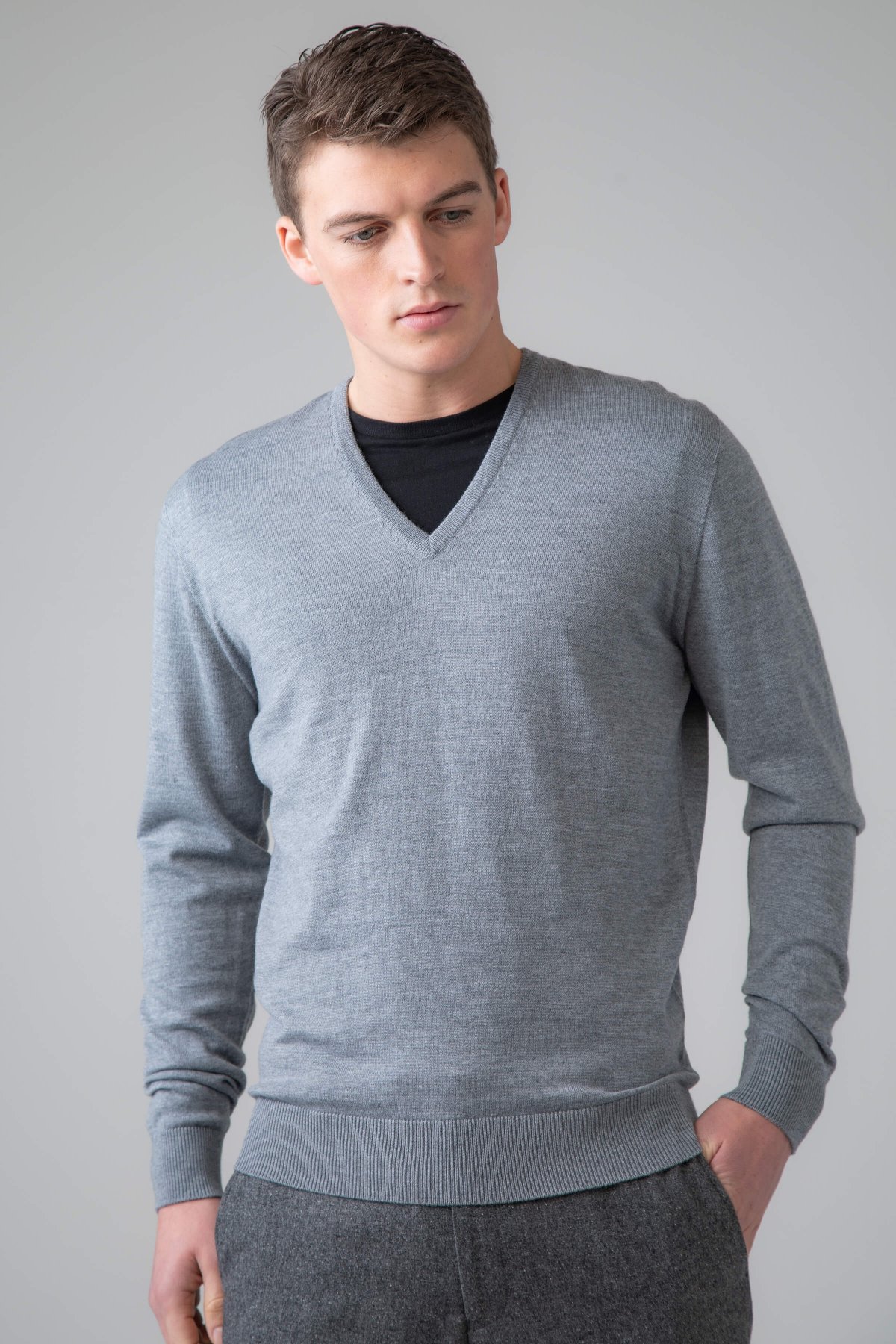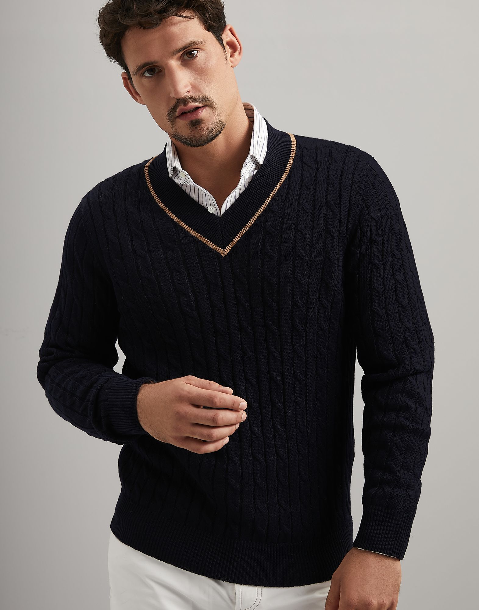 El clásico jersey con cuello en V se puede llevar con una camisa. Además, una corbata en un conjunto de este tipo es un elemento opcional. Esta opción es indispensable en el vestuario de los hombres de negocios. El modelo también combina con una camiseta. Sin embargo, es importante aquí que no haya un escote desnudo profundo.