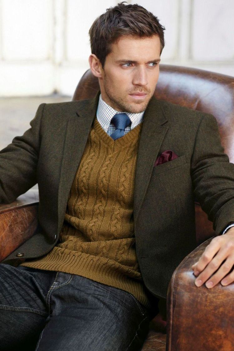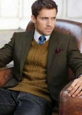 El código de vestimenta de la oficina favorece los suéteres de colores uniformes. En este caso, vale la pena elegir un estilo que siga los contornos del cuerpo. No elijas modelos con adornos o parches. Pullover, complementado con una corbata, apareció gracias a los estudiantes de la Universidad de Oxford. Es mejor dar preferencia de esta manera a las corbatas originales, por ejemplo, de punto o de lana. Una adición interesante es la corbata de granadina de seda. Los suéteres se ven muy bien en conjunto con las chaquetas de tweed. Solo necesitas elegir un buen color para conseguir un look elegante. Pero es mejor no usar jerseys con chaleco.