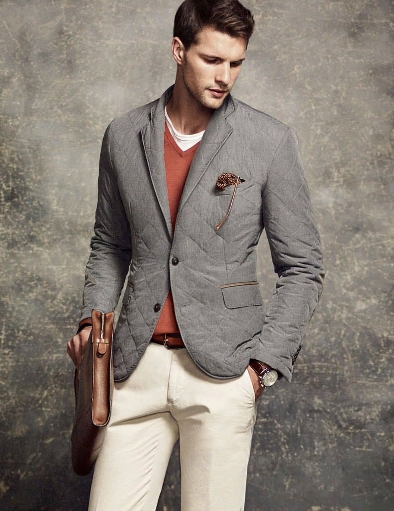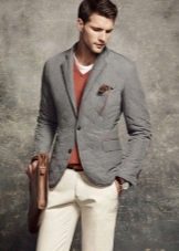 Al combinar un jersey con una chaqueta, es importante que difieran en tonos, pero combinen en color. No elijas tonalidades para que la camisa, el suéter y la chaqueta se conviertan en una mancha de un solo color.Sin embargo, se deben evitar muchos colores, especialmente si son expresivos. Las chaquetas que tienen patrones, por ejemplo, un gran cuadro multicolor, deben complementarse exclusivamente con un jersey liso.