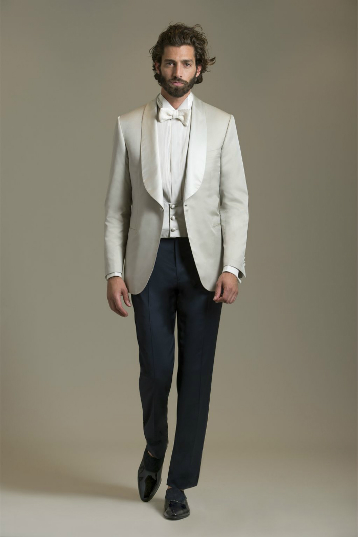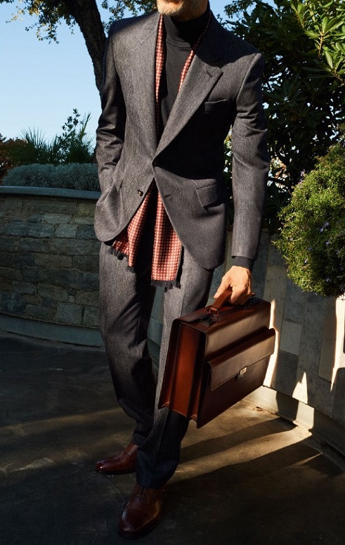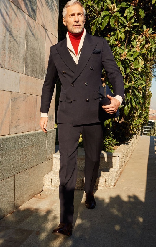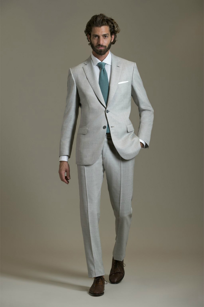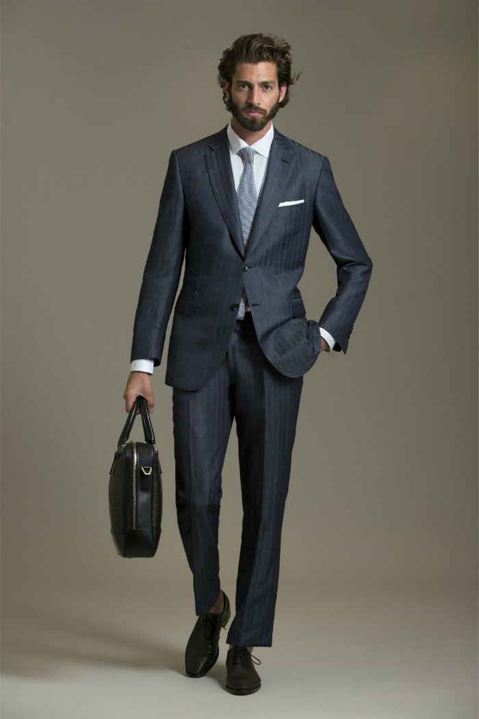 Estos trajes de diseñador combinan bien con camisas informales en agradables tonos crema. Brioni lo comentó de esta manera: "La moda de pasarela masculina moderna se está volviendo más femenina, pero nuestros clientes todavía gravitan hacia los clásicos, y debe mostrarse correctamente".