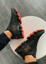 - DEBAJO DE LA ARMADURA Es una marca juvenil, la empresa inició su trabajo hace relativamente poco tiempo e inmediatamente decidió centrarse en la producción de zapatillas para un estilo de vida activo.Un lugar aparte en el catálogo lo ocupan los modelos de baloncesto, que cuentan con suelas antideslizantes y muchos colores originales. Durante un par de años, la empresa logró no solo declararse, sino también superar a sus competidores más cercanos. Se presta mucha atención a las pruebas de productos. Las zapatillas se prueban entre deportistas antes de llegar a las tiendas. Una característica distintiva de los modelos de la marca es que tienen características antibacterianas, así como la capacidad de eliminar perfectamente la humedad. Además, son muy duraderas, por lo que pueden hacer frente a cargas elevadas durante el entrenamiento sin problemas. La suela está fabricada con una tecnología única que le proporciona una mejor estabilidad.