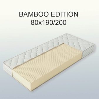 - Bambú. Otro modelo de colchón de calidad a un precio asequible. Este ejemplar no tiene resortes, su altura es de 12 cm. La carga máxima permitida en 1 cama para dormir está limitada aquí a 90 kg. Este producto hipoalergénico para un sueño confortable tiene un efecto anatómico. Aquí se utiliza espuma de poliuretano combinada con látex natural como material de relleno. Incluye una funda de jacquard extraíble.