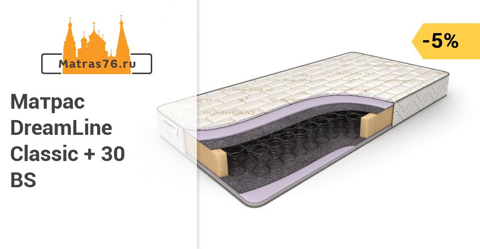 - Dreamline Classic +30 BS - la combinación más óptima de precio y calidad. Este es un colchón alto con buenas propiedades ortopédicas y de bajo costo.