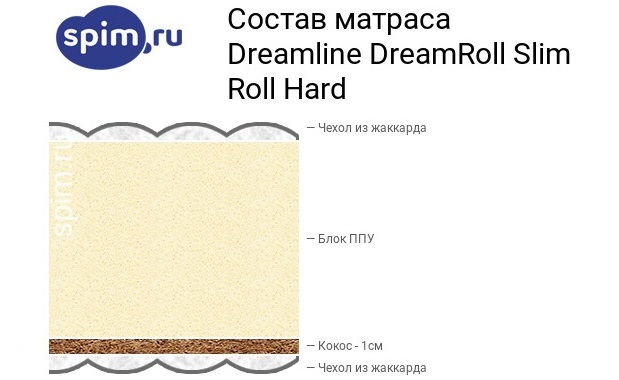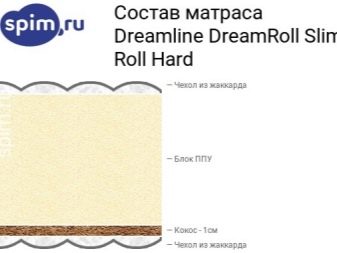 El colchón sin muelles DreamLine Slim Roll Hard tiene dos caras de diferente dureza: media e inferior a media. El diseño es sin resortes, la altura del colchón es de 11 cm y el peso máximo por litera es de 100 kg. El producto proporciona un buen grado de comodidad.
