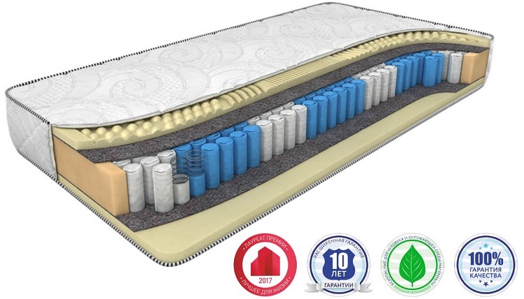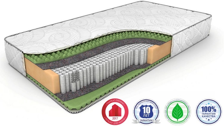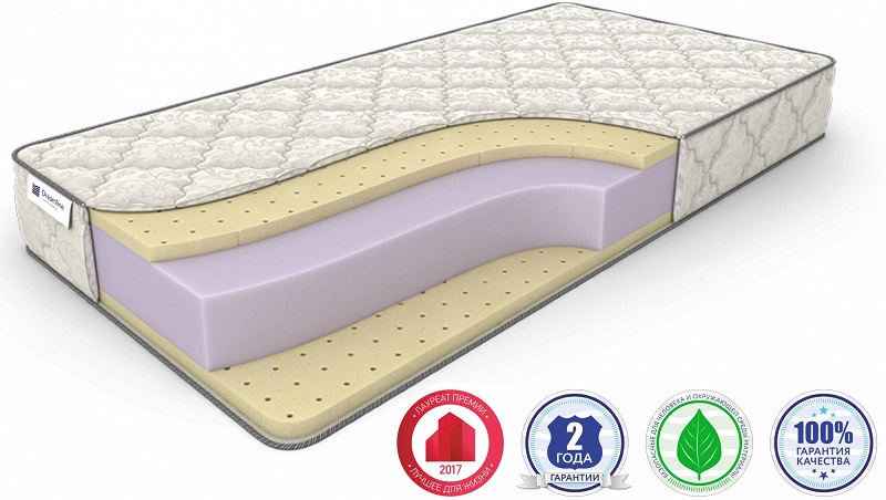 En la producción de este modelo se utiliza látex artificial, fibra de coco. El producto se basa en un monobloque de espuma de poliuretano. Se suministra en una funda de jacquard de algodón con acolchado de capas de hallcon.