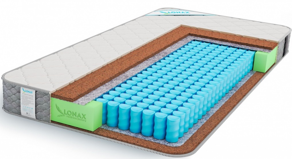 - Lonax... Fabricante popular de colchones con resortes autónomos. En el surtido de la fábrica, junto con las formas estándar, puede recoger tapetes redondos, ovalados, cuadrados, así como productos para niños.