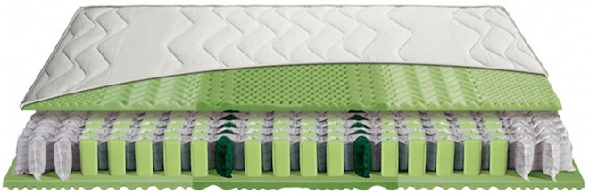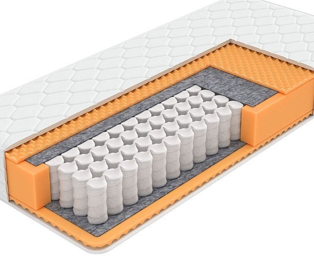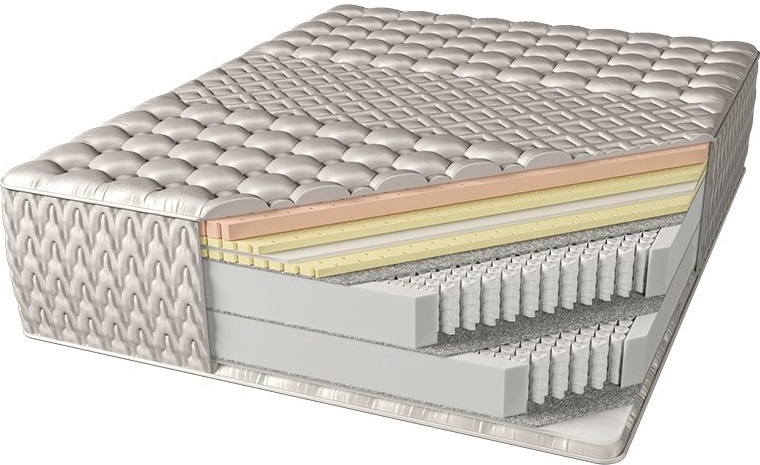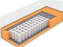 El producto tiene el precio más alto de los modelos presentados. Los resortes independientes siguen perfectamente las curvas del cuerpo, manteniéndolo en una posición cómoda durante el sueño. El colchón se puede utilizar en ambos lados. La primera está formada por finas capas de fibra de coco y espuma, tiene una dureza media. El segundo está hecho de espuma suave.