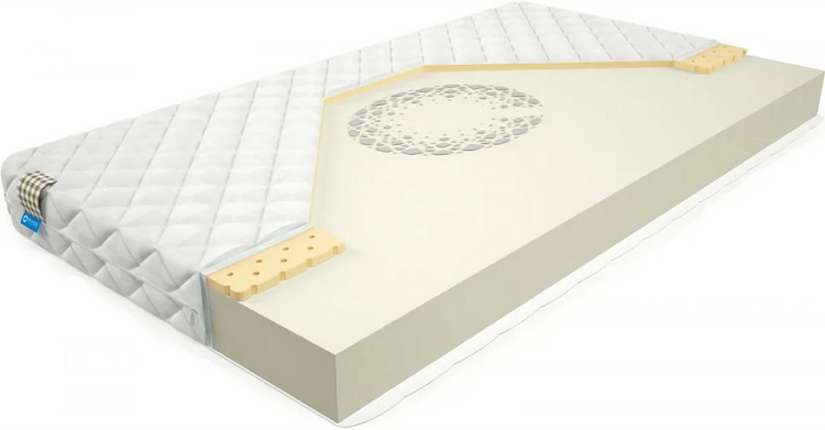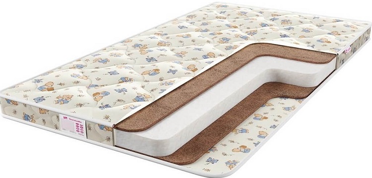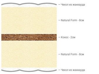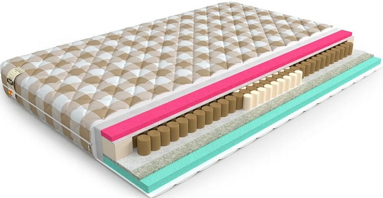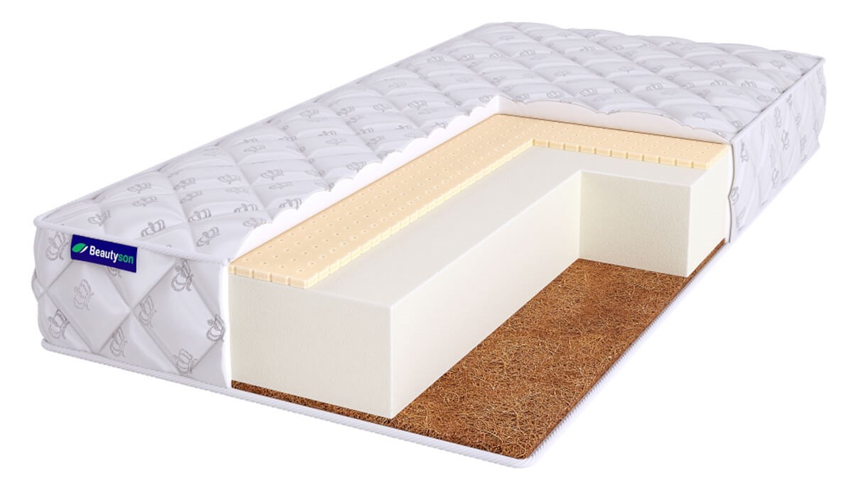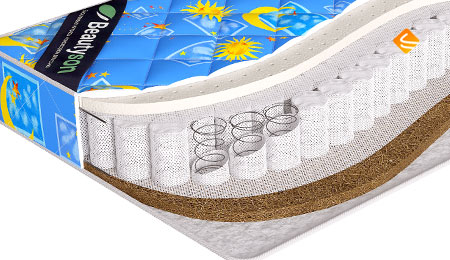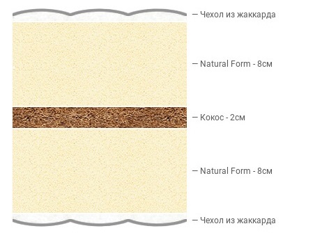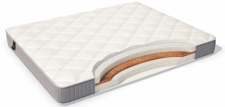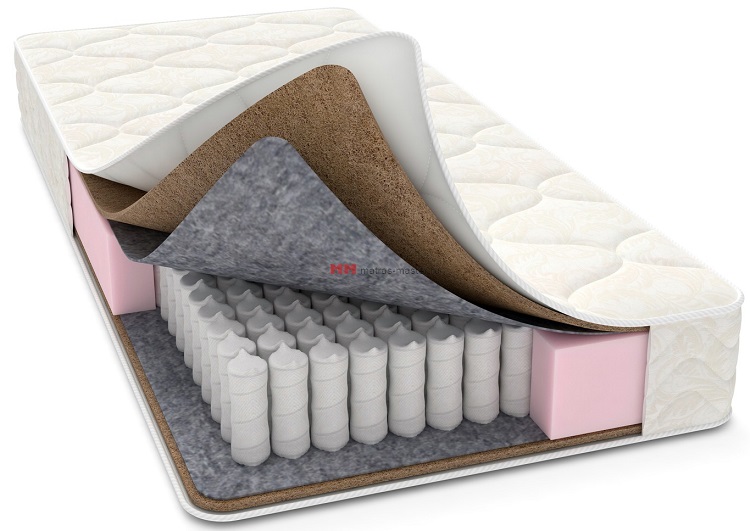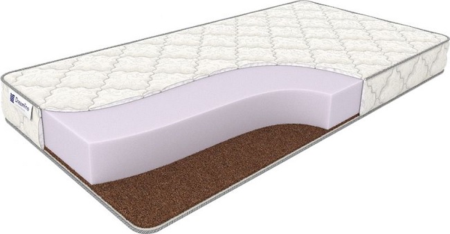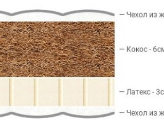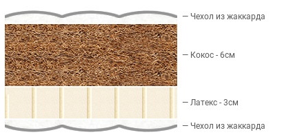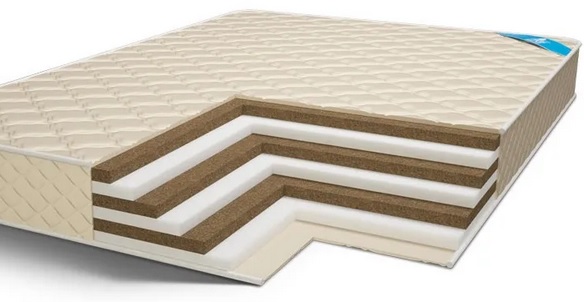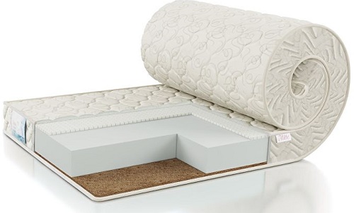 Modelo económico. En la base hay dos capas de material. Uno es el coco para mantenerlo fresco en verano. El segundo es el látex, que da calor en invierno. Las capas se alinean sin pegamento.