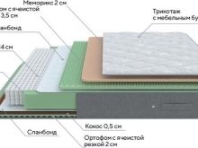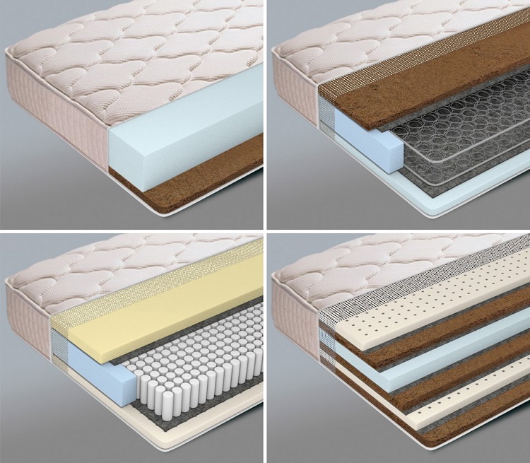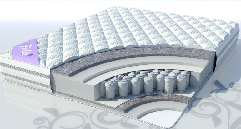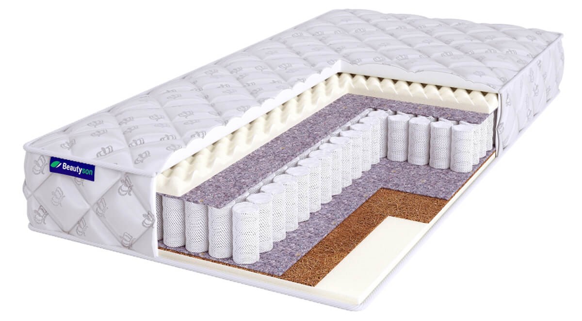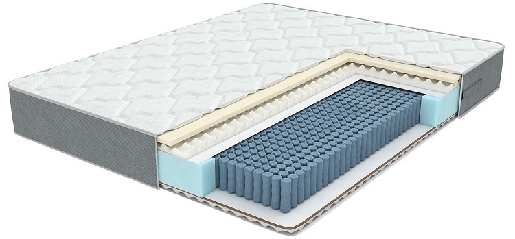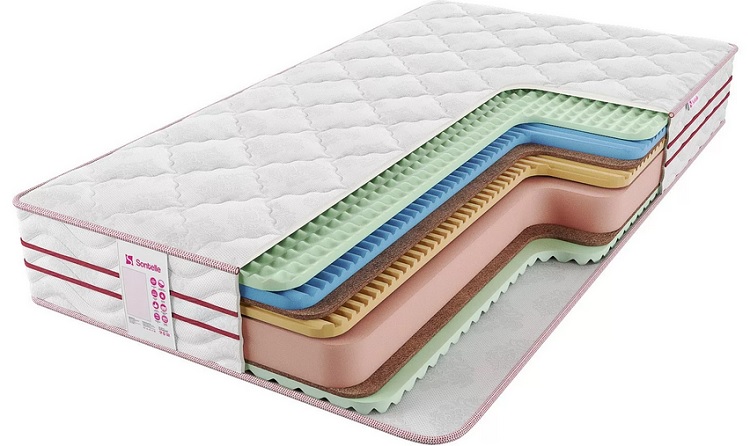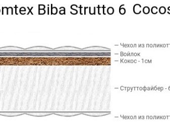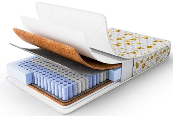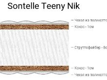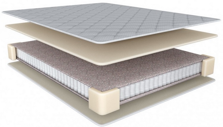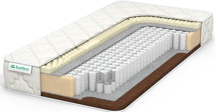 Modelo económico. En la base hay dos capas de material. Uno es el coco para mantenerlo fresco en verano. El segundo es el látex, que da calor en invierno. Las capas se alinean sin pegamento.