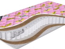 Modelo del segmento de precio medio con dos lados de trabajo. El colchón es apto para niños de hasta 7 años. Tiene dos lados de trabajo. El primero se compone de fibra de coco, que proporciona un efecto ortopédico. El segundo está hecho de látex artificial.