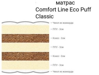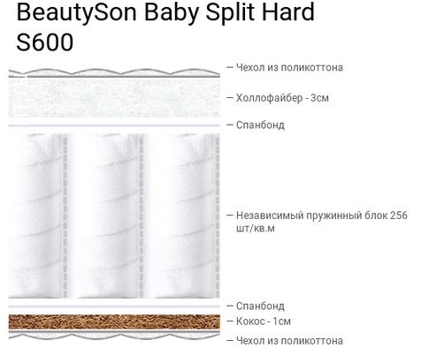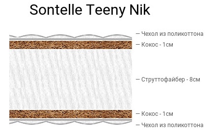 Un producto económico de dureza media, apto para bebés de hasta 3 años. El relleno del colchón se compone de fieltro, fibra de coco y fibra de strutt. El efecto ortopédico se logra mediante el uso de fibras verticales que se asemejan a resortes. Los materiales distribuyen perfectamente el peso, contribuyendo a la correcta posición de la columna.