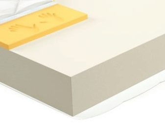 Un modelo de presupuesto, cuyos lados tienen diferente rigidez. Uno está hecho de espuma anatómica con textura ondulada para un sueño cómodo. El otro es más duro, hecho de una combinación de coco y espuma. Las capas están conectadas sin pegamento, lo que garantiza que el producto sea natural e hipoalergénico.