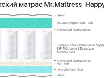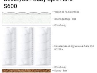 El colchón puede ahorrar mucho. Los niños menores de 3 años duermen en el lado del látex, después de lo cual se da la vuelta al producto y se utiliza hasta los 7 años. La impregnación de la funda evita el crecimiento de bacterias. El colchón mide 9 cm de alto.