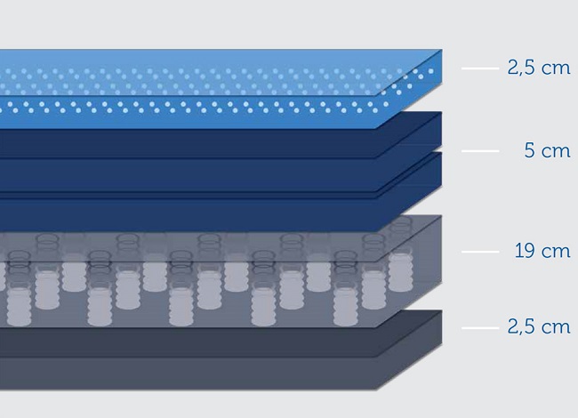 El modelo tiene una altura óptima de 6,5 cm. El relleno permite que el aire circule constantemente, lo que evita la formación de microflora patógena.