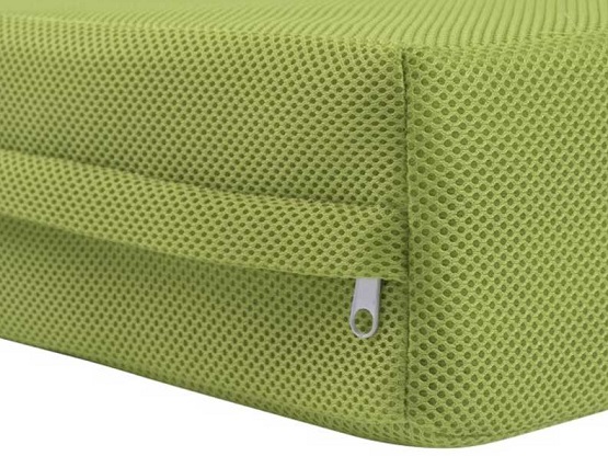 La funda está confeccionada en jersey italiano con relleno de poliéster. Da una sensación de suavidad y comodidad. La altura del colchón es de 18 cm y el peso máximo permitido es de 120 kg.