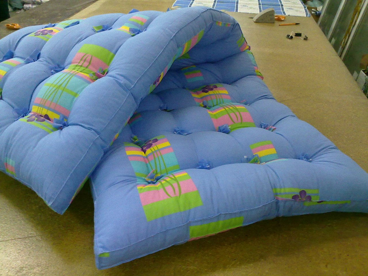 - Materiales. El mejor relleno es el algodón. Tiene un efecto beneficioso sobre la salud humana, previene la creación del efecto invernadero. La cubierta debe estar hecha de materiales duraderos como teca, percal grueso, polialgodón o chintz duradero.