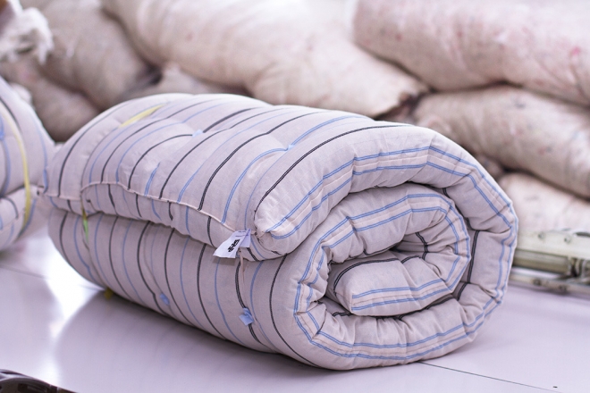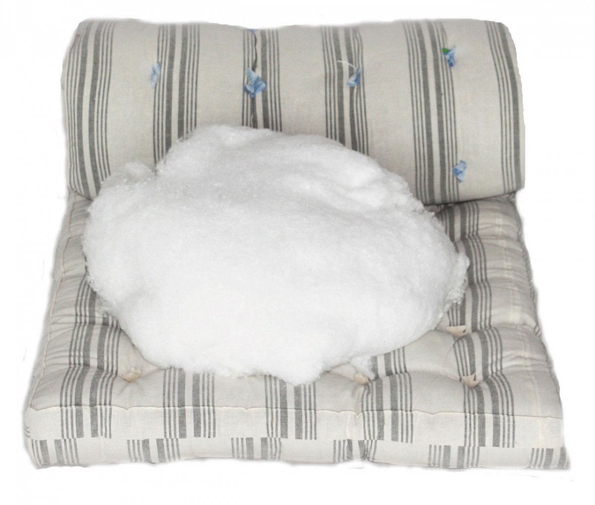 - De coser. Dichas materias primas tienen demanda en la producción en masa de colchones. Los productos rellenos de algodón de costura son mucho más pesados que los colchones fabricados con materias primas de segunda categoría. Vata contiene no más del 35% de fibras largas y no menos del 65% de fibras cortas. Estas materias primas tienen la mejor relación calidad-precio.