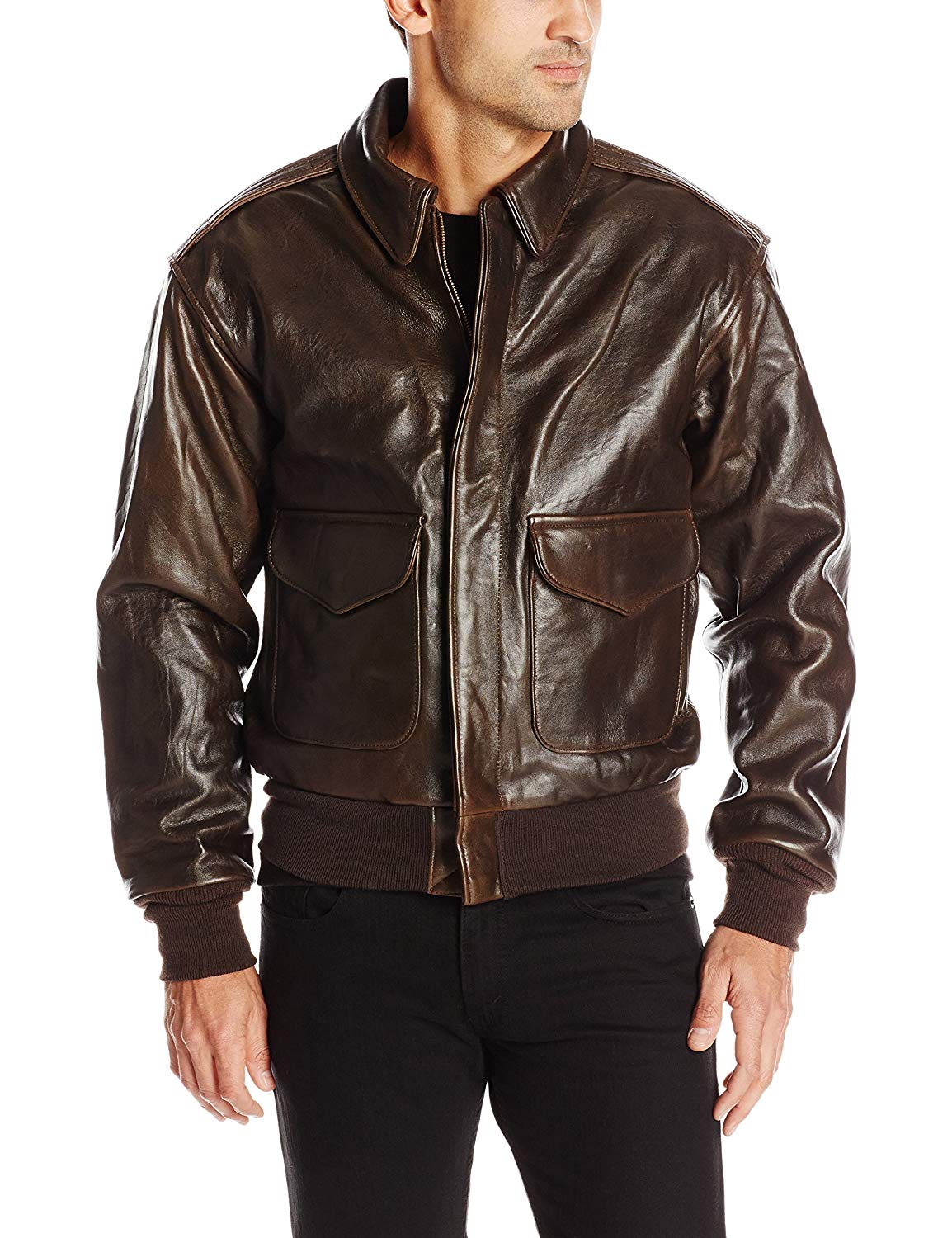 El clásico bombardero americano A-2 tenía sus propias diferencias, características de este modelo particular de chaquetas. Estaba hecho de cuero de caballo marrón con un cinturón y puños tejidos obligatorios. Las solapas de los bolsillos de este modelo se han sustituido por una cremallera. El "piloto" se caracteriza no por un tejido, sino por un cuello camisero de cuero, con "botones" en sus esquinas y en el cuello.