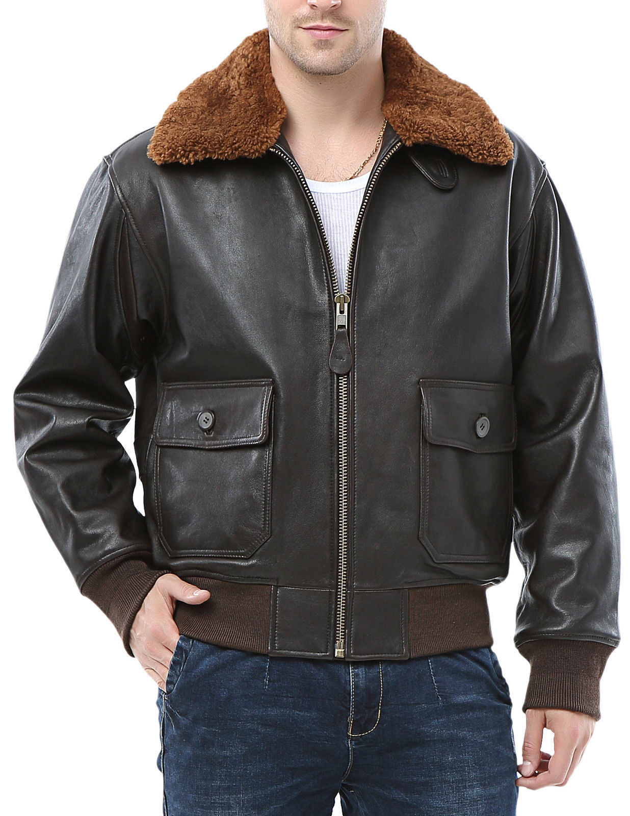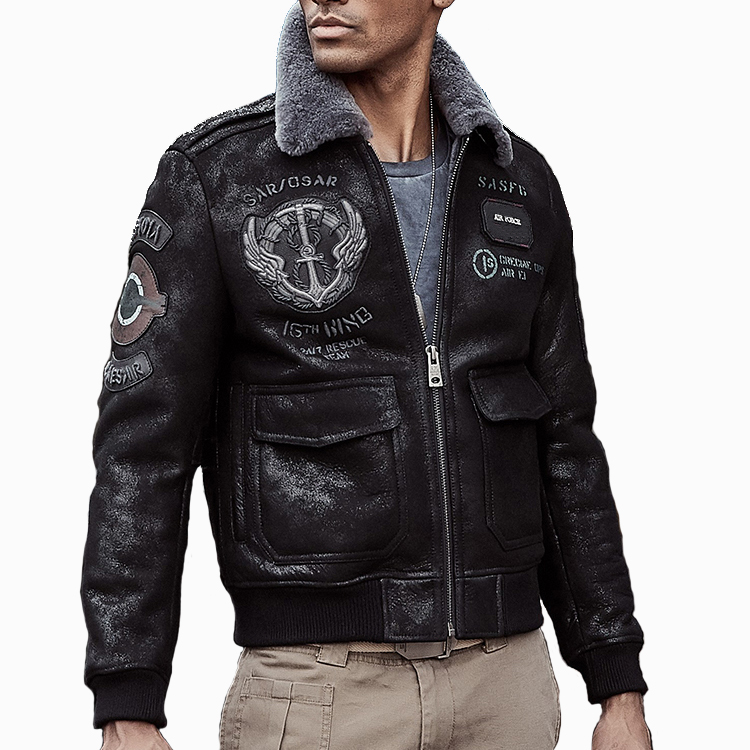 La chaqueta de vuelo de invierno A-2 utiliza un forro de piel de oveja natural para proporcionar la máxima calidez sin sacrificar la comodidad.