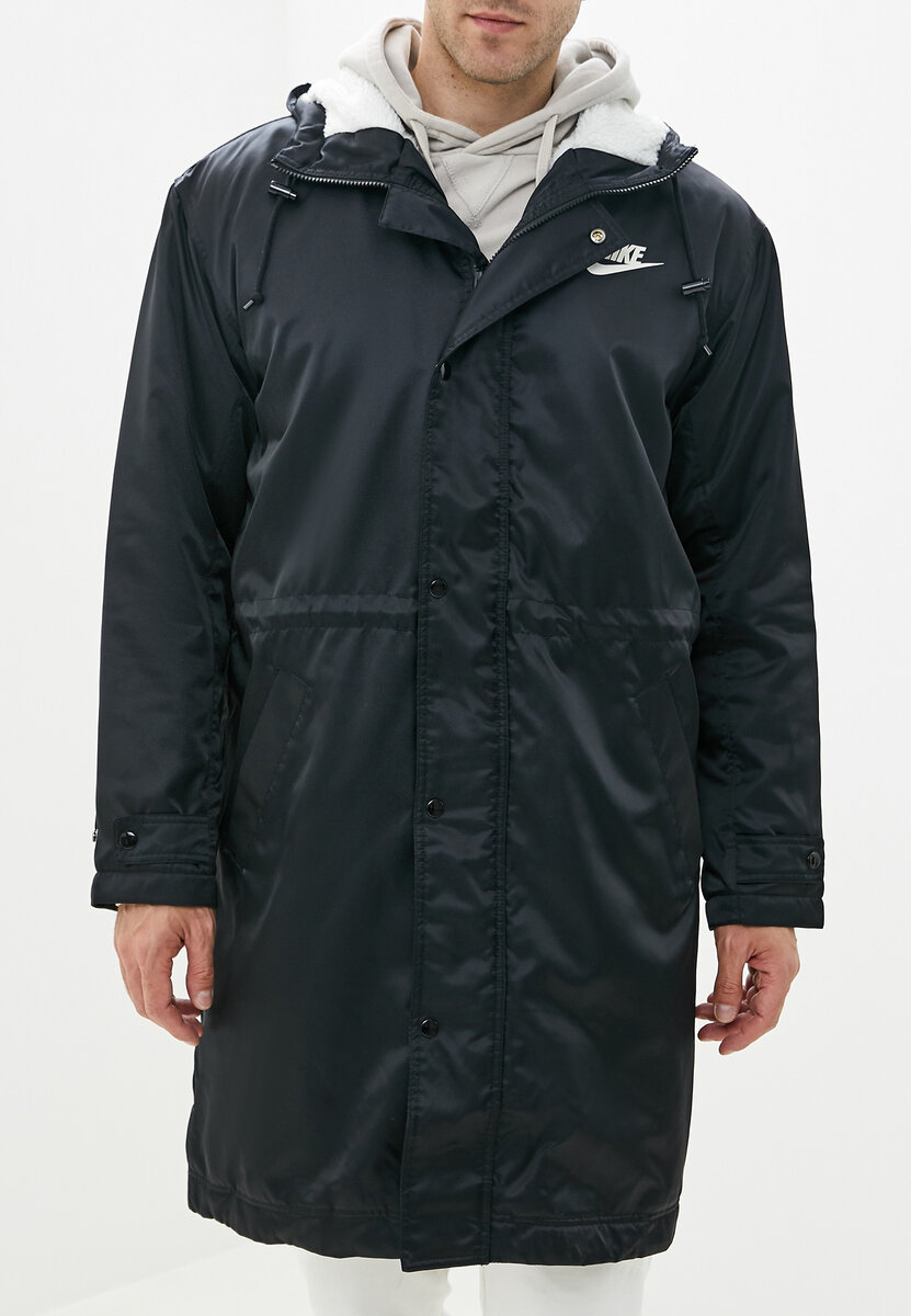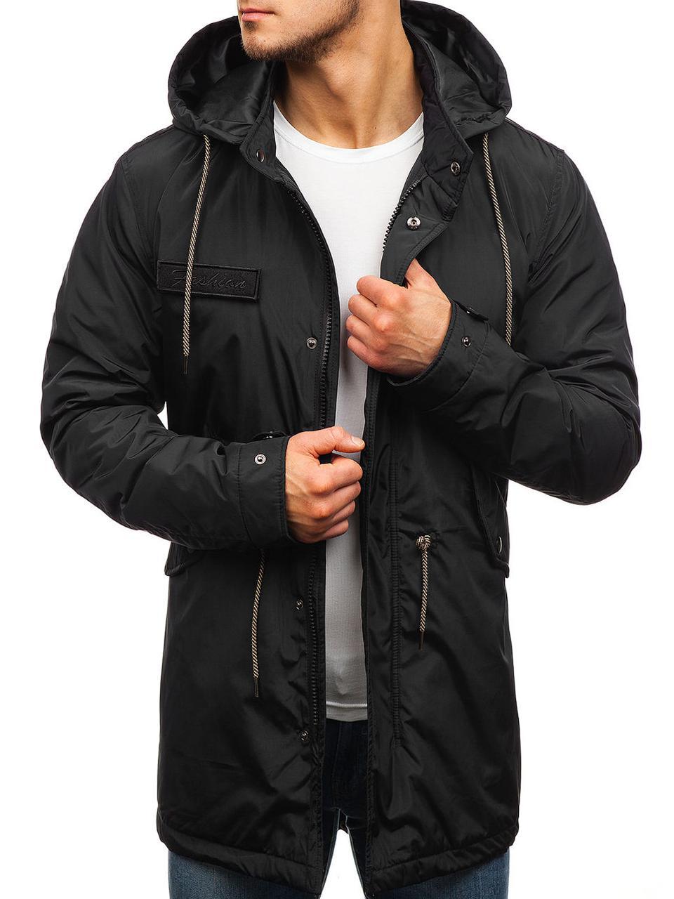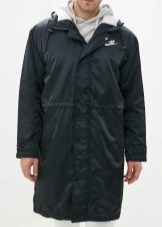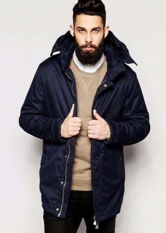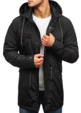 Una parka negra alargada es adecuada para crear una imagen en un estilo de negocios relajado., que complementará a la perfección unos vaqueros negros clásicos y un jersey oscuro democrático con una camisa clara. Tal conjunto será una buena opción para reuniones de trabajo informales, eventos corporativos al aire libre.