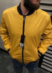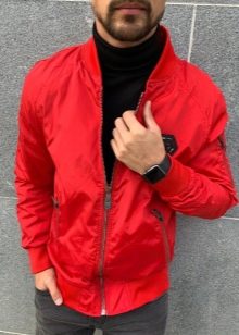 Los diseñadores recomiendan combinar chaquetas deportivas de colores con cosas de colores monocromáticos neutros. Por lo tanto, los jeans clásicos de color azul oscuro o gris oscuro y una camisa de mezclilla pueden ser una excelente adición a una elegante chaqueta de bombardero de color rojo brillante o amarillo intenso.