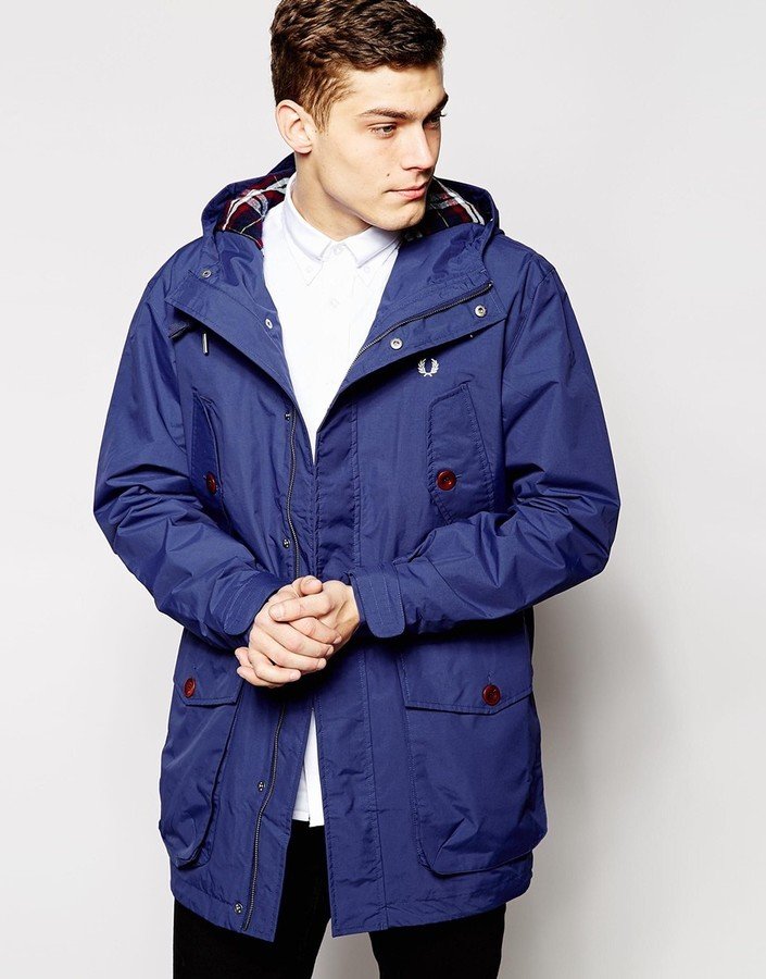 Anorak - una cómoda chaqueta cortavientos con capucha, diseñada para actividades al aire libre, turismo y deportes. Una característica distintiva de este modelo es la ausencia de la tradicional hendidura frontal con cremallera. Se recomienda combinar los anoraks de hombre con ropa y calzado tanto deportivos como casuales. Los anoraks también se ven originales en combinación con ropa y calzado de estilo militar.