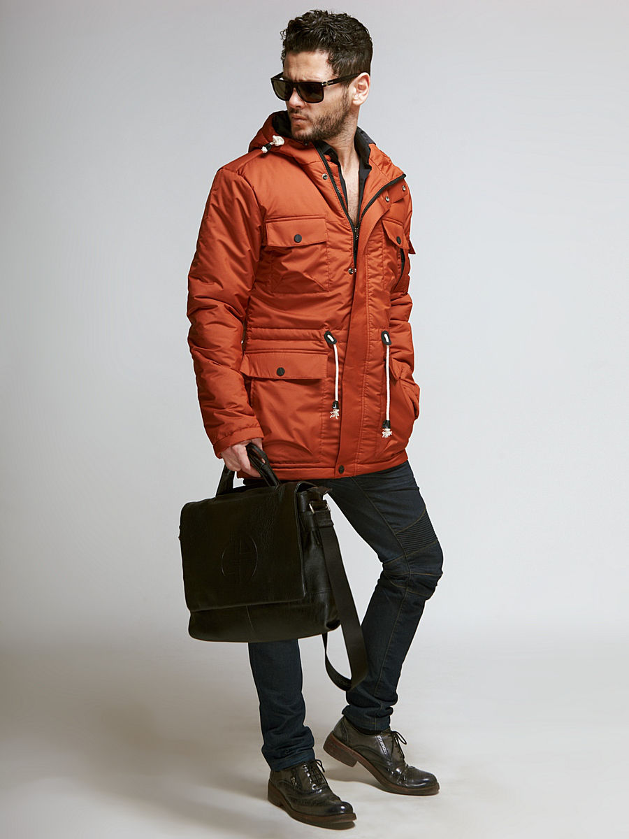 Anorak - Chaqueta aislante y alargada con capucha. Se puede combinar tanto con ropa deportiva como con ropa casual y de negocios. Se recomienda llevar parkas de estilo deportivo con jeans, joggers o pantalones rectos clásicos.