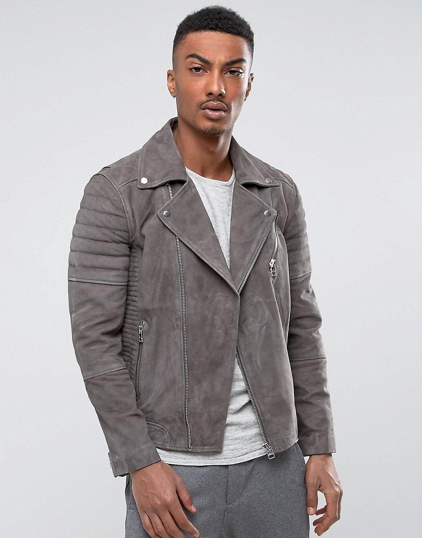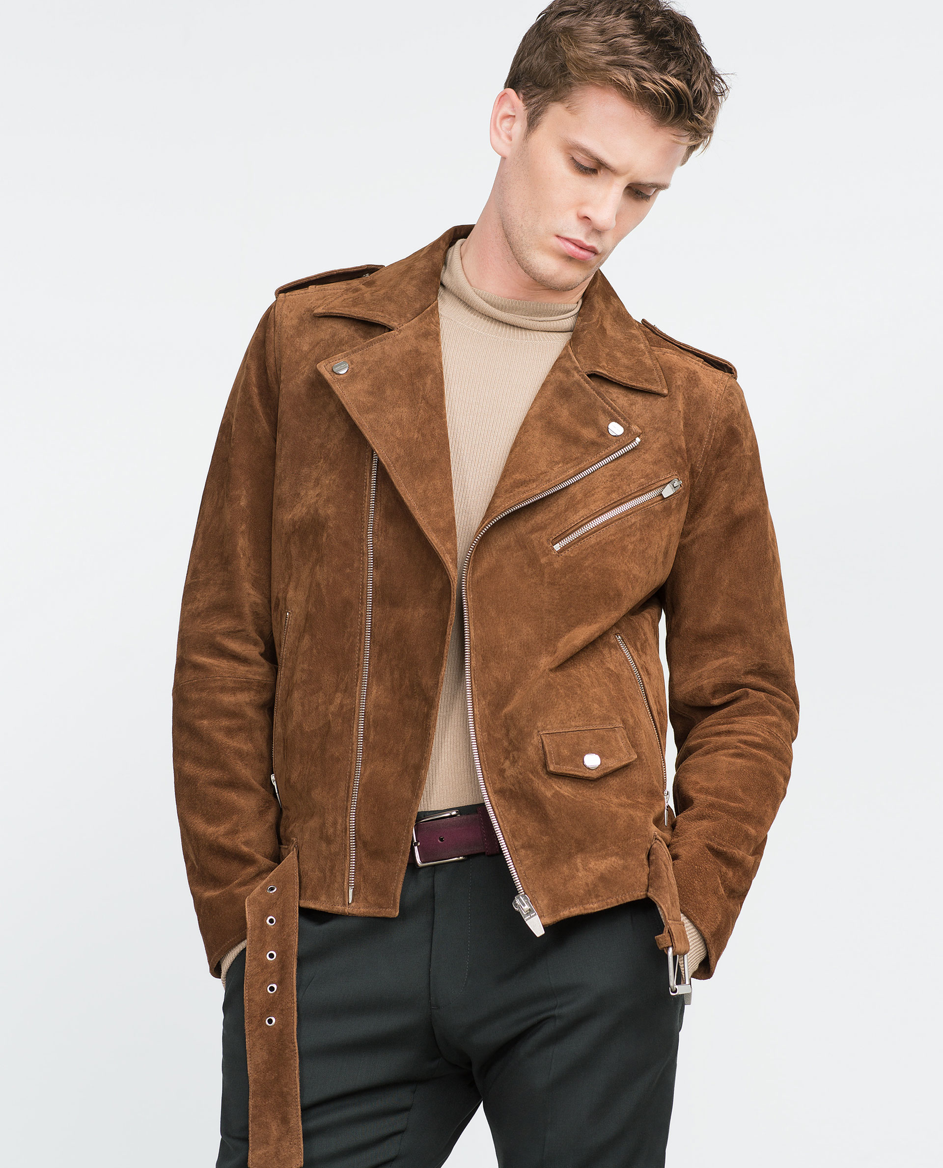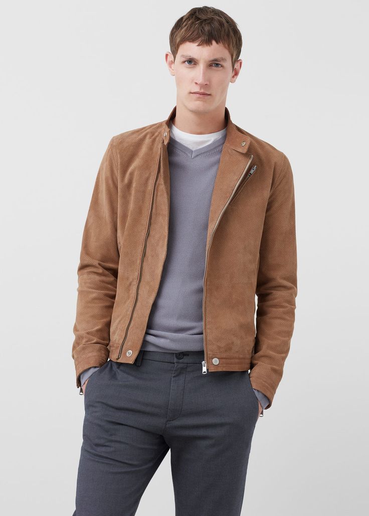 Una chaqueta de cuero de gamuza se ve más suave y sobria que el cuero. Estos dos estilos expresan cierta agresividad o dan a la imagen una calma imperturbable.