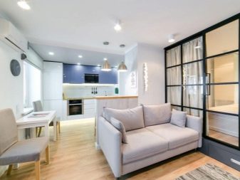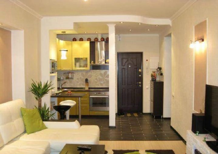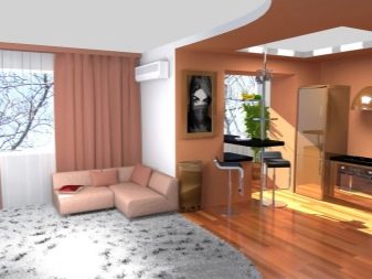 - Combinando una cocina con un pasillo. permitió crear una sala completa que combina un comedor, un área de recreación y un lugar para cocinar.