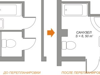 - Demoler la mampara que separa el baño y el inodoro para combinarlos en una sola habitación... Si, incluso en esta forma, el baño sigue siendo pequeño, su área se puede aumentar colocando el cuadrado del pasillo.