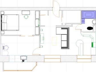 - Todo es un poco más complicado aquí: se quitó parte del pasillo, dejando solo un pasillo estrecho. La estancia se dividió en 2 partes: una se combinó con la cocina transformándola en cocina-comedor-sala de estar, la otra se equipó con un dormitorio.