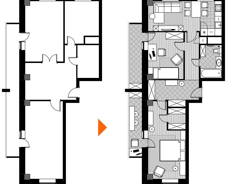 ¿Cómo hacer un apartamento de tres habitaciones con un apartamento de dos habitaciones?