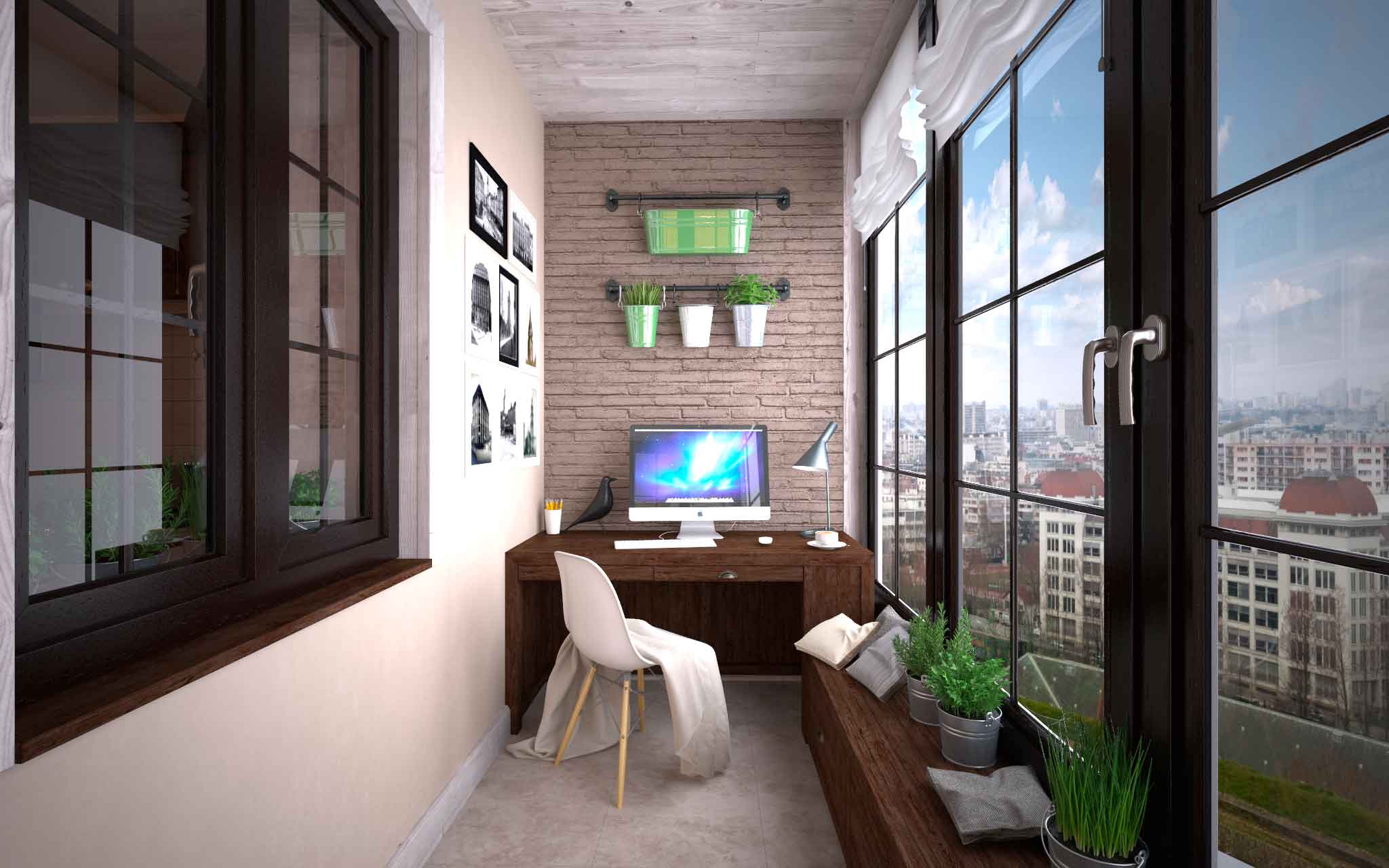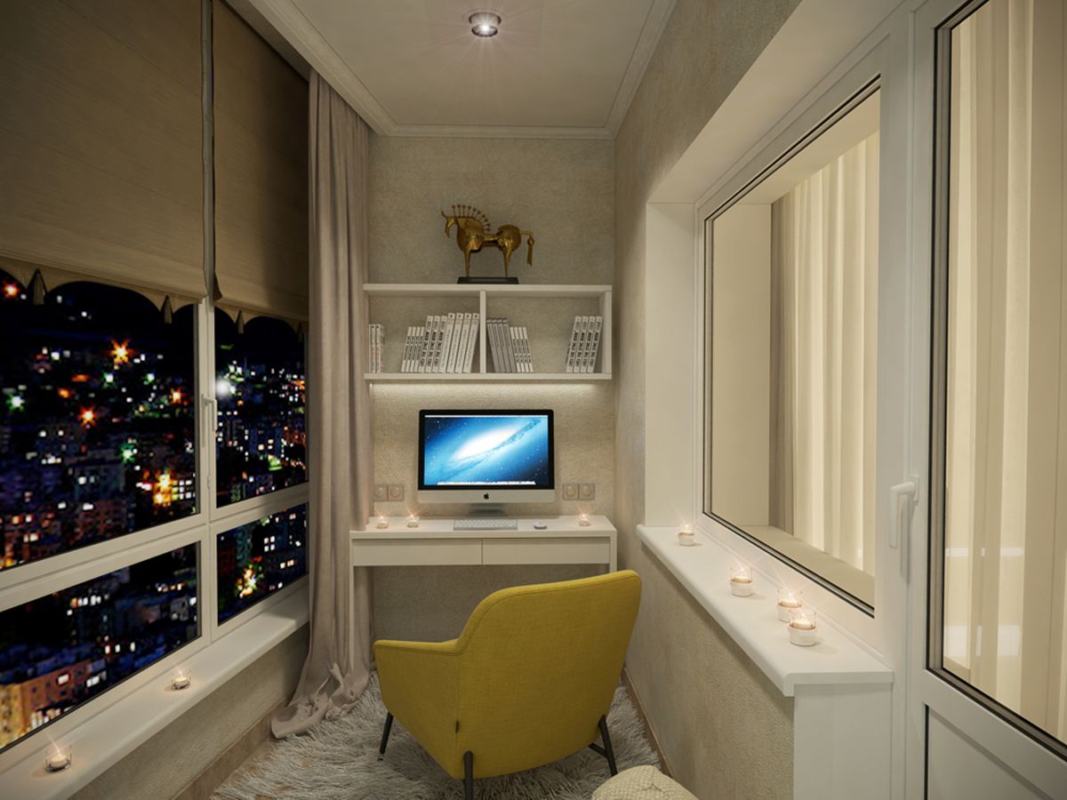 - Usando el balcón / logia... Bueno, aquí llegamos al método muy querido de convertir un espacio de balcón en una habitación completa. Es cierto que para ello hay que aislarlo adecuadamente. Como regla general, las salas de trabajo, los mini-gimnasios o los dormitorios están equipados en balcones / logias (especialmente cuando se trata de zonas con un clima templado, donde no hay inviernos duros), o se combinan con una cocina / sala.