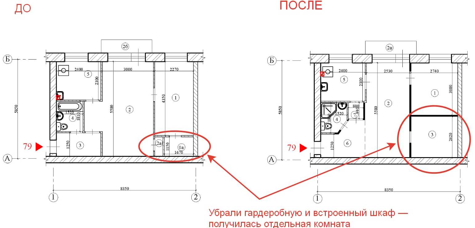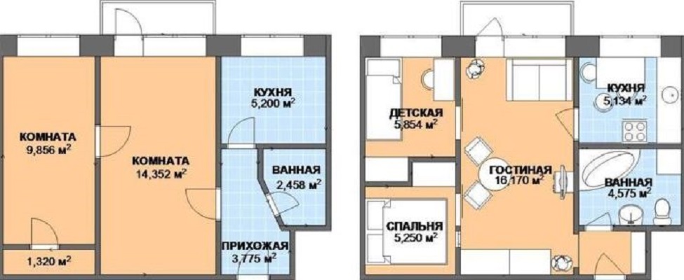 - No se preocupe por la ubicación de las puertas interiores. - como regla general, al remodelar un apartamento de 2 habitaciones en un apartamento de 3 habitaciones, se pueden hacer aberturas en cualquier lugar, porque las paredes dentro de la vivienda no soportan carga.