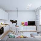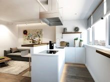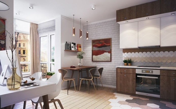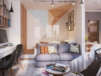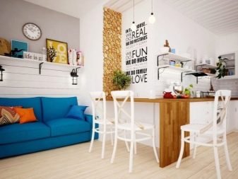 Si el apartamento tiene balcón o logia, se pueden aislar y ampliar la habitación (o cocina) uniendo esta parte. Para una cocina pequeña, esta es una buena opción para la expansión, y la parte anterior del alféizar de la ventana se convierte en una barra de bar, que divide la cocina en dos zonas, conectando simultáneamente dos habitaciones previamente diferentes. Pero aún más a menudo, un apartamento de una habitación con una habitación de 18 cuadrados se convierte en un estudio, combinado con una cocina. No es una mala opción para una familia joven. Y si el apartamento tiene techos altos, puedes pensar en el segundo nivel. Así, la habitación se puede dividir en dos de forma vertical.
