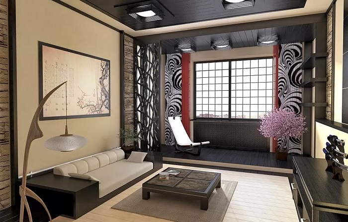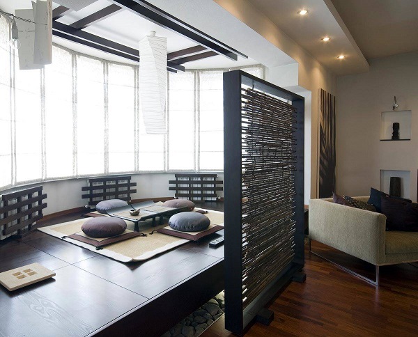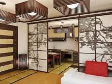 - Japonés. Los colores preferidos son el beige cálido y el marrón. La habitación se puede dividir en zonas con una pantalla; a menudo se utilizan muebles empotrados. Luego está el japandi, una mezcla de japonés y escandinavo, que está muy de moda en la actualidad.