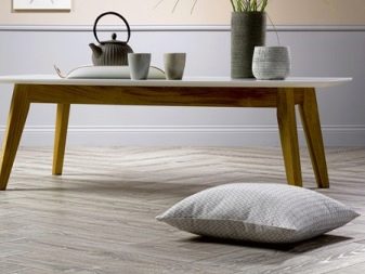 El parquet es una opción que rara vez se encuentra en odnushki, como otros tipos de revestimientos. Sin embargo, la habitación y la cocina se pueden embaldosar, pero la habitación quiere un suelo cálido.