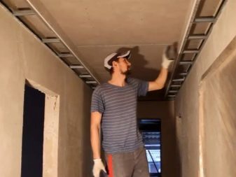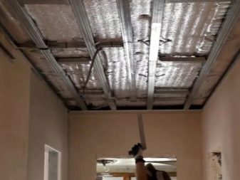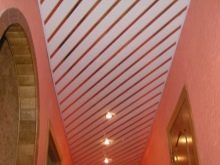 Los modelos suspendidos tienen un diseño complejo: se utiliza un marco hecho de elementos de acero galvanizado para la instalación. El material para revestir el techo son listones de metal o madera, a veces se utilizan láminas de yeso. Es mejor montar la versión con bisagras en un espacio con techos altos, ya que tales estructuras se reducen inmediatamente entre 15 y 20 cm por debajo de ellas.