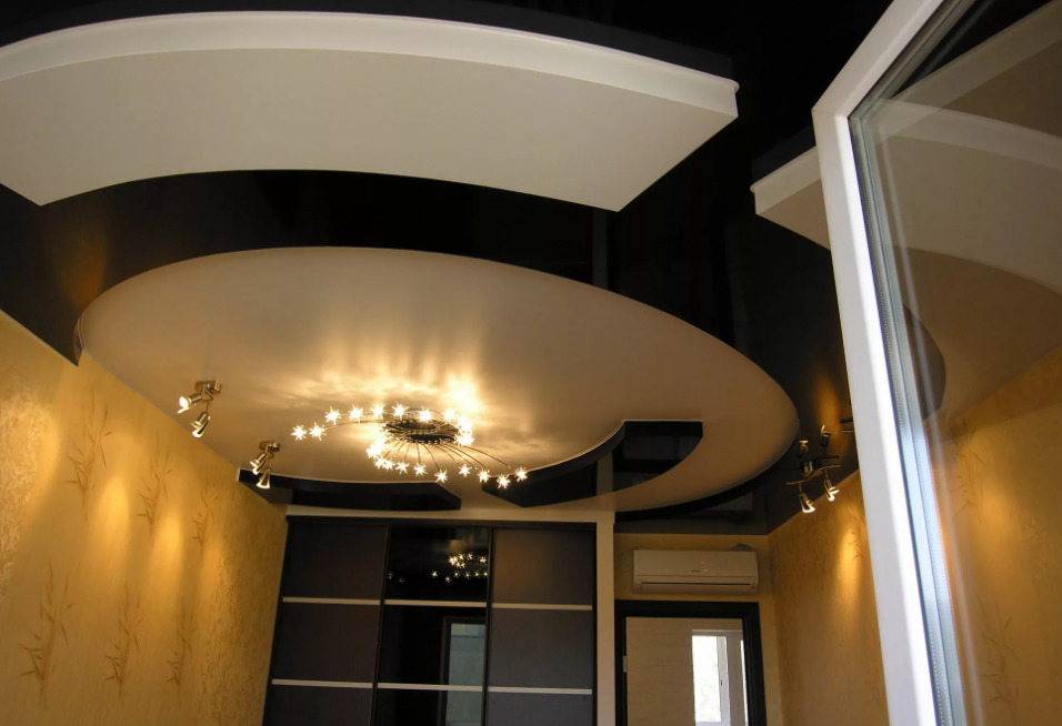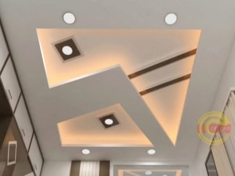 Estos techos difieren de otras opciones en geometría compleja y la presencia de varios niveles. Dichos diseños se pueden combinar, hechos de varios tipos de material.