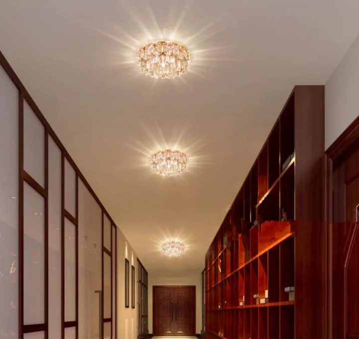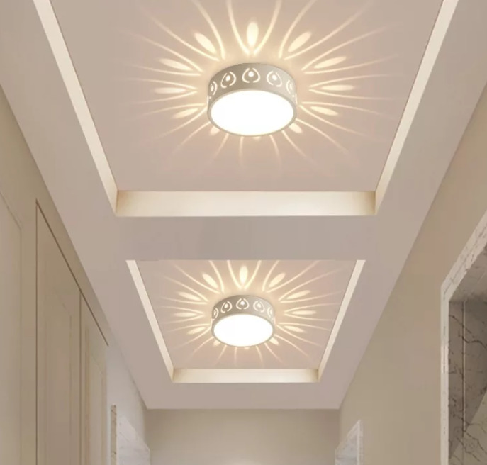 - Luminarias puntuales - Lámparas, cuya luz puede dirigirse en cualquier dirección. Este modelo le permite enfocarse en un objeto específico. Hay opciones de techo y pared. Las lámparas de techo brindan la capacidad de dirigir la luz sobre un objeto, aumentar o disminuir el brillo. Una opción muy relevante en estancias con techos bajos.