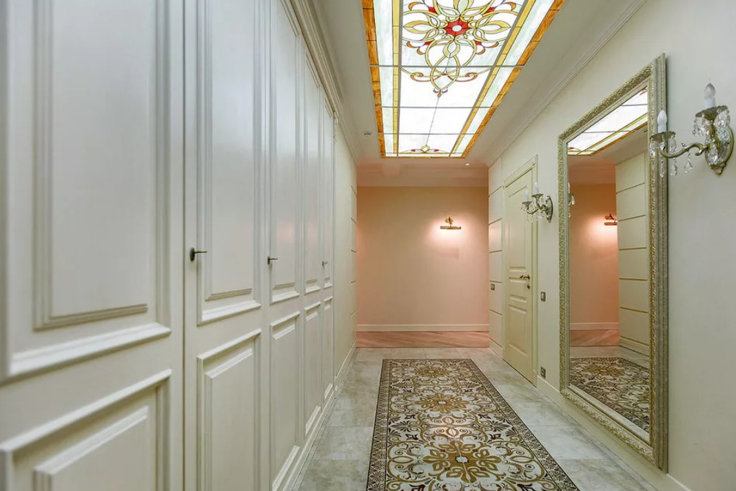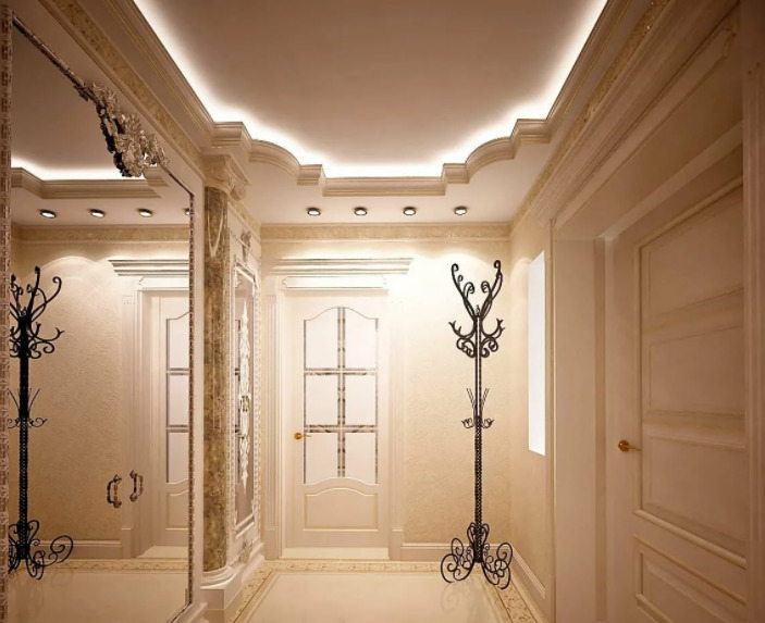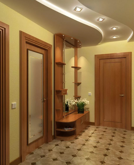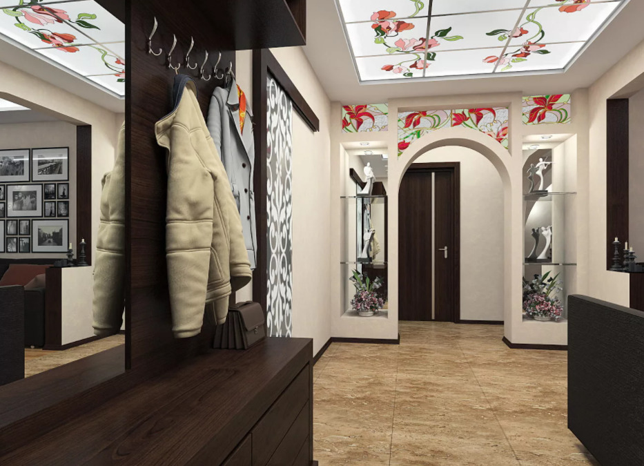 Con un buen plan en la mano, puede terminar con una hermosa renovación en todo el apartamento. La apariencia del techo es de gran importancia al crear un interior de pasillo único.