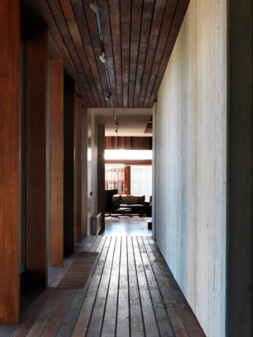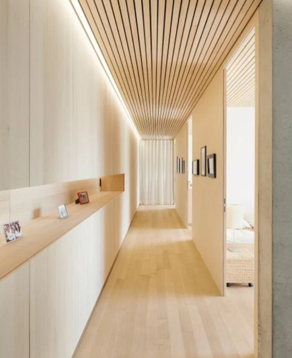 Si los tablones se dirigen a través del pasillo estrecho, entonces el espacio se verá visualmente más ancho.