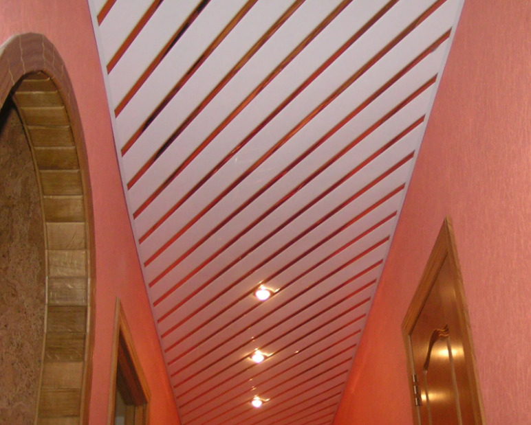 El techo de riel de metal es perfecto para decorar no solo pasillos, sino también habitaciones con alta humedad. Si la habitación no tiene calefacción, esta opción también es relevante. Los techos de los racks no se deterioran debido a la abundancia de humedad en el aire, toleran perfectamente el calor o el frío extremos, son duraderos.