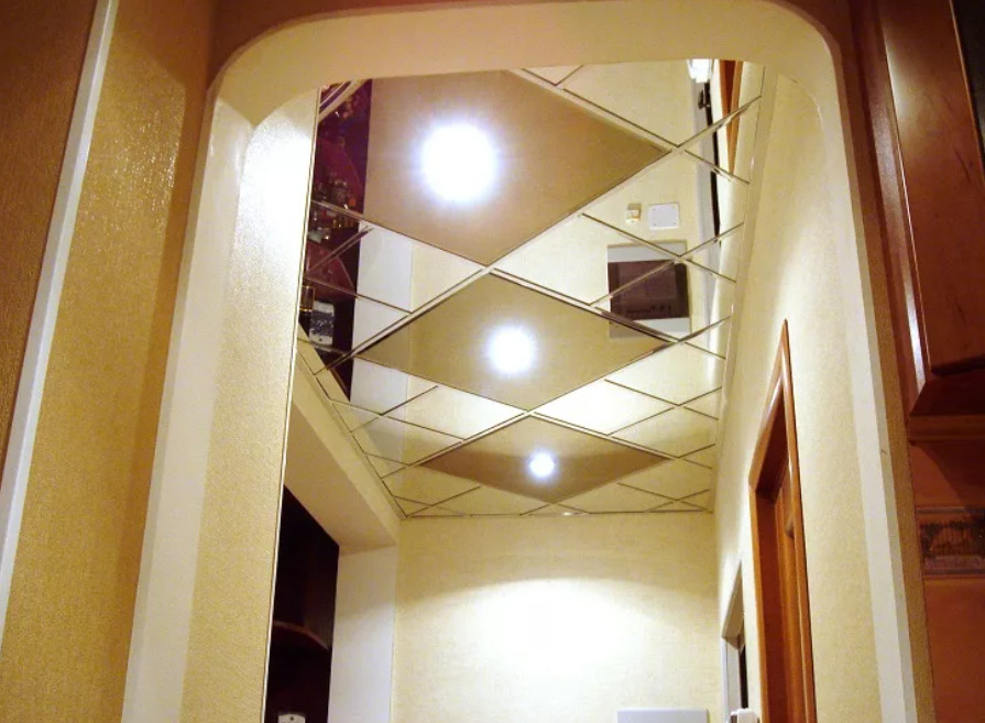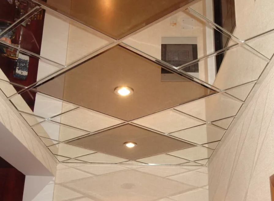 Las placas con superficies espejadas son análogas al conocido techo espejado. La película especial refleja el espacio de manera hermosa y expande visualmente la habitación.